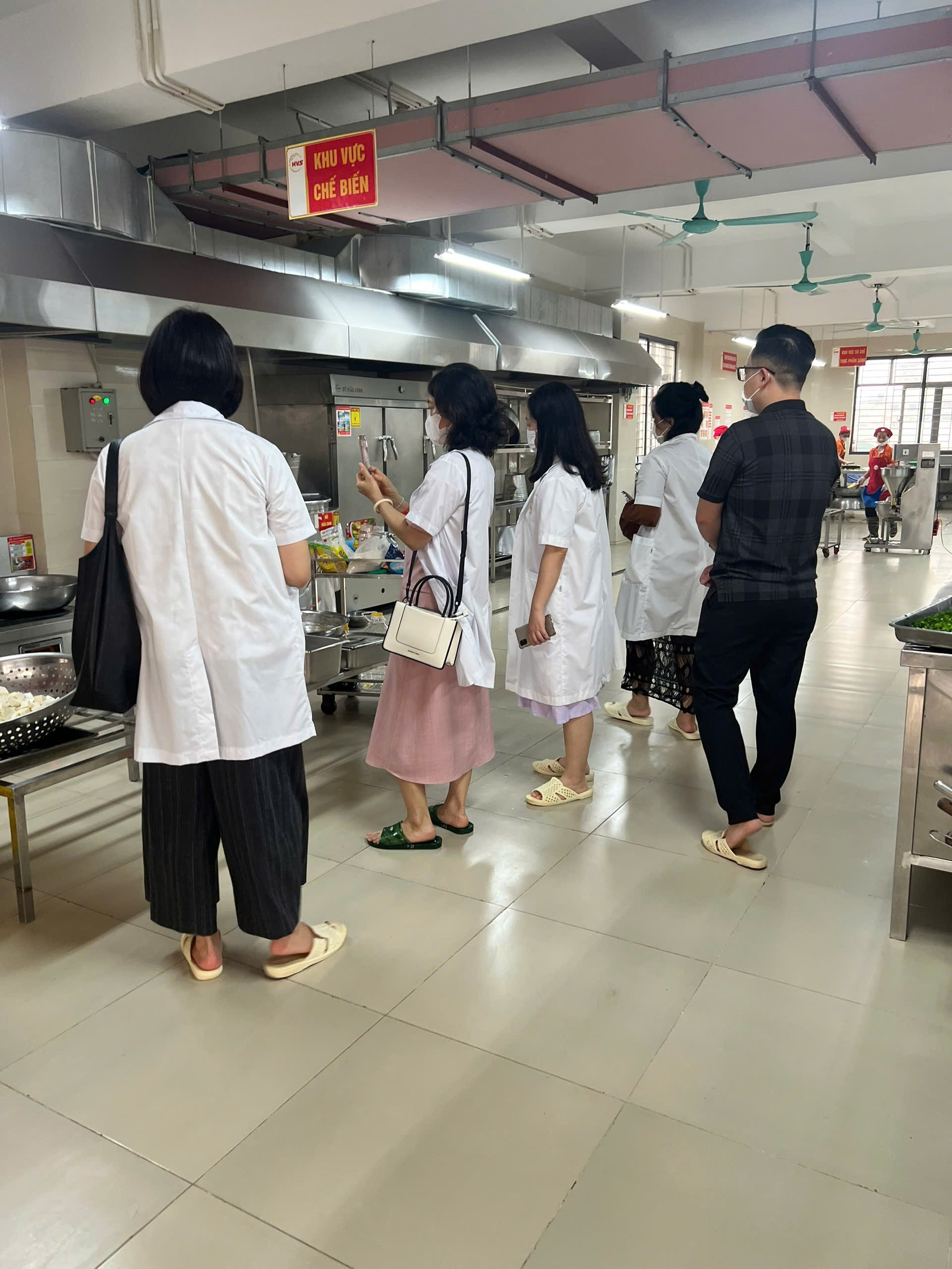 Trưởng ban đại diện PHHS các khối lớp tiến hành kiểm tra bếp ăn bán trú.
