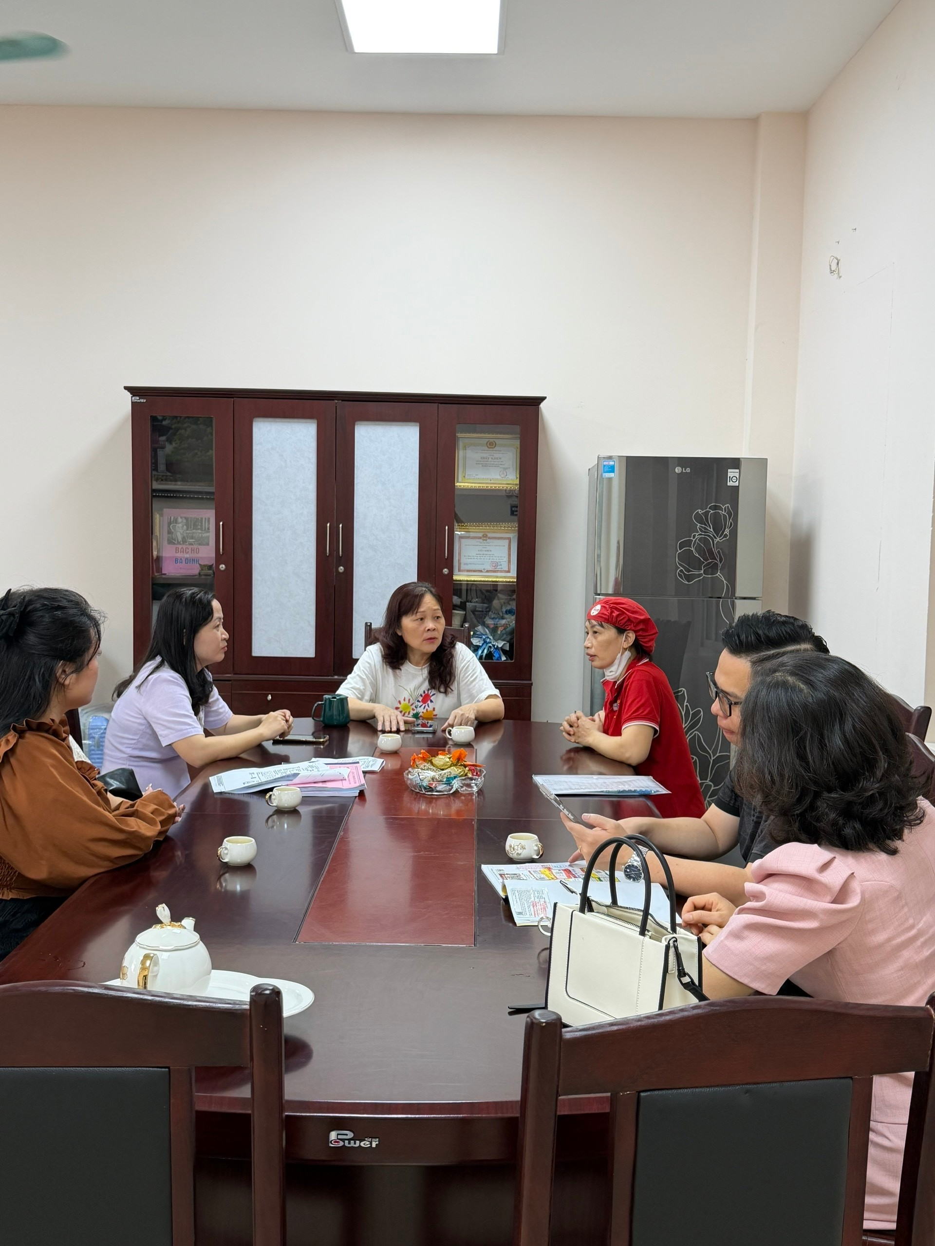 Ban Phụ huynh thảo luận, trao đổi với nhà trường và đại diện nhà bếp về các biện pháp nhằm đảm bảo an toàn thực phẩm.