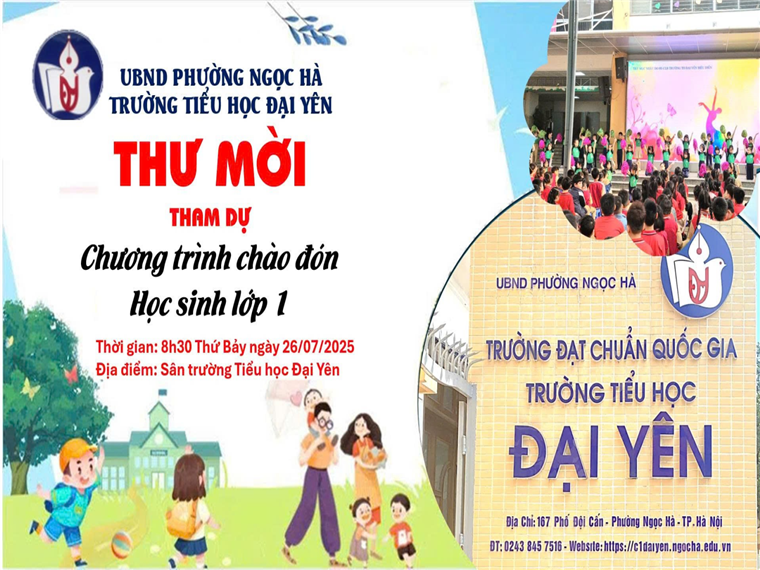 Trường Tiểu học Đại Yên xin trân trọng thông báo về việc đón các em học sinh lớp 1 tựu trường năm học 2025-2026 như sau: