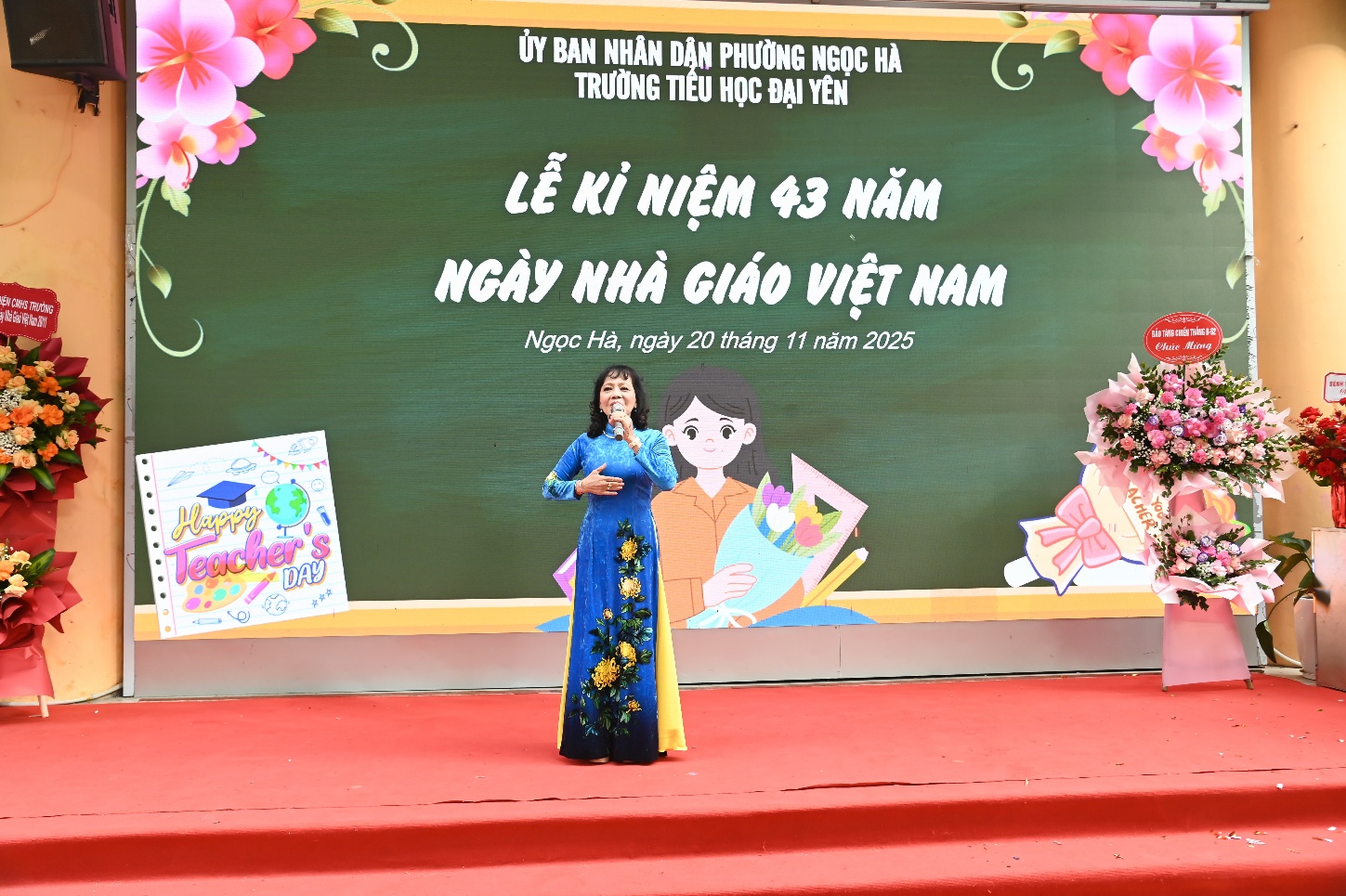 Hòa chung không khí vui tươi, phấn khởi của cả nước hướng tới kỷ niệm 43 năm Ngày Nhà giáo Việt Nam (20/11/1982 – 20/11/2025), sáng ngày 20/11, Trường Tiểu học Đại Yên, phường Ngọc Hà, thành phố Hà Nội đã long trọng tổ chức buổi gặp mặt tri ân các thầy giáo, cô giáo đã nghỉ hưu.