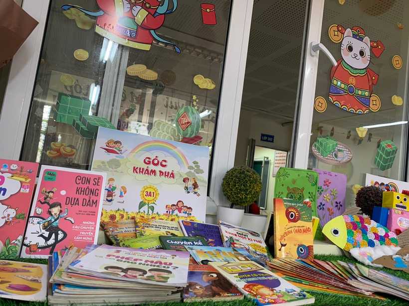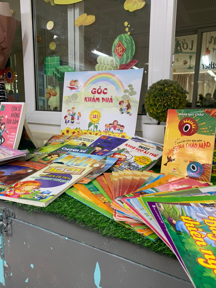 Đến với Góc khám phá của lớp 3A1, chắc chắn các bạn sẽ thấy vô cùng thú vị khi ở đây hội tụ rất nhiều các đầu sách khác nhau thuộc nhiều chủ đề: truyện cổ tích, truyện về các danh nhân, truyện giáo dục, tạp chí… Không thể thiếu được trong số đó là các cuốn truyện tranh mà chắc chắn bạn nào cũng thích mê. Tủ sách lớp tôi có gần 300 quyển sách và truyện, tất cả đều do các bạn học sinh và cô giáo quyên góp, mang đến tạo thành góc thư viện chung của lớp. Trong các giờ ra chơi, chúng tôi luôn chọn cho mình những cuốn sách thật hay để cùng ngồi đọc và trao đổi với nhau. Đọc xong, chúng tôi đều cất cẩn thận lên giá sách. Mỗi khi được bố mẹ mua cho một quyển sách nay, các bạn trong lớp tôi lại mang đến bổ sung thêm vào giá sách của lớp để các bạn khác trong lớp đều được đọc. Hàng ngày, chúng tôi phân công nhau kiểm tra, sắp xếp để giá sách luôn gọn gàng. Thân mời các bạn hãy ghé thăm Góc khám phá của lớp 3A1 nhé! Chắc chắn các bạn sẽ tìm được những cuốn sách mình yêu thích đấy! Dưới đây là những hình ảnh về Góc khám phá của lớp tôi: