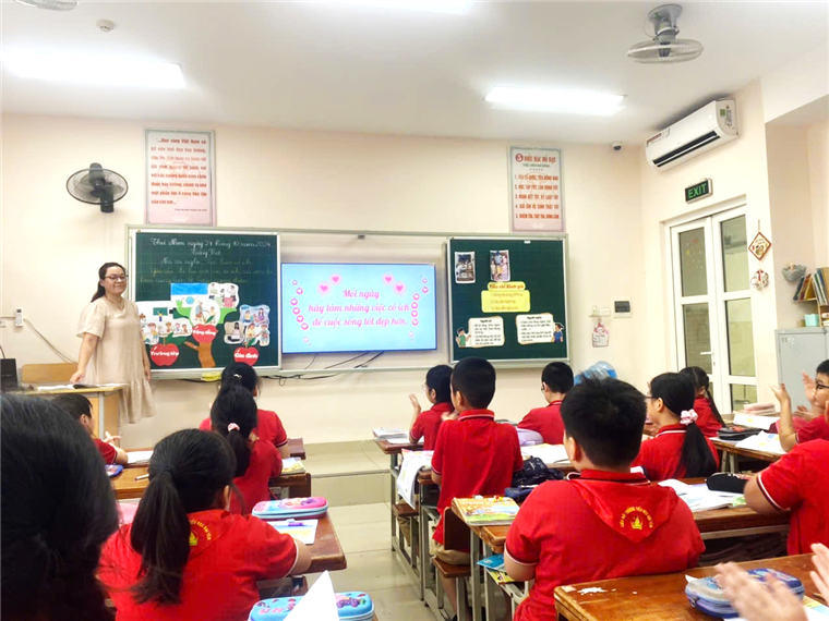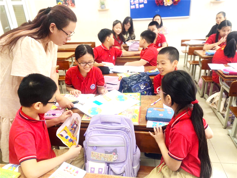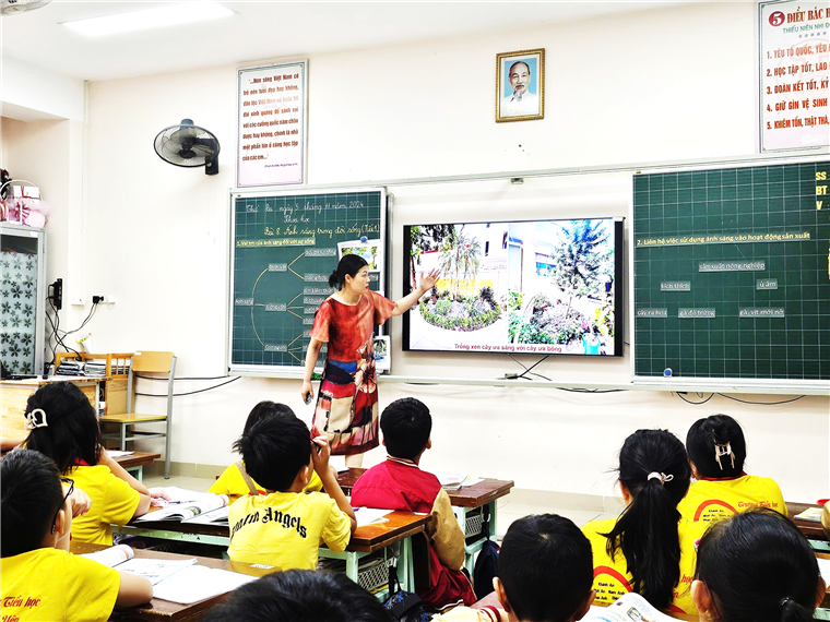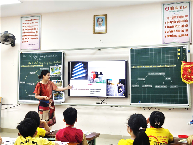 Cô giáo Lê Thuy Thủy say sưa trong tiết Khoa học