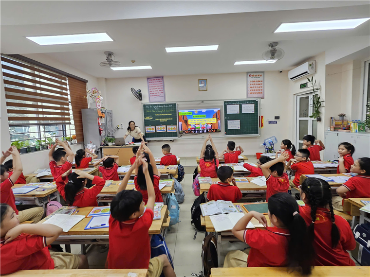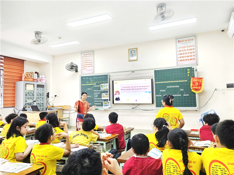 Cô giáo trẻ Tạ Thanh Vi mở màn hội thi của Khối 4 với tiết Nói và nghe