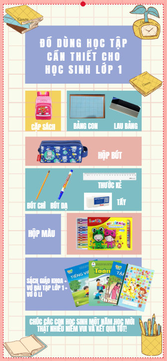 Bước vào lớp 1 là một cột mốc quan trọng trong hành trình học tập của mỗi bạn nhỏ. Để các con có thể tự tin, hứng thú khi bắt đầu năm học mới, việc chuẩn bị đầy đủ và phù hợp các đồ dùng học tập là vô cùng cần thiết.