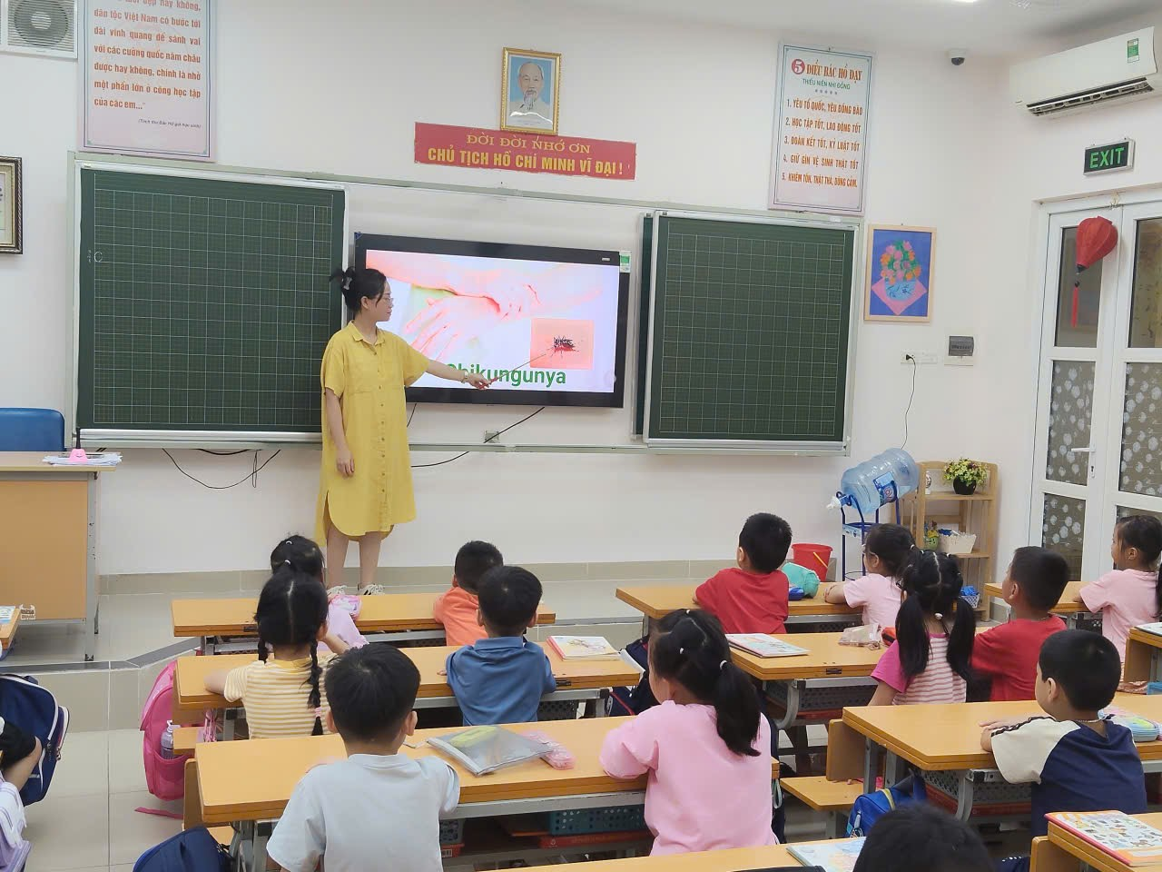 Trường Tiểu học Đại Yên tổ chức phun thuốc diệt muỗi và vệ sinh lớp học. Dưới đây là một số hình ảnh: