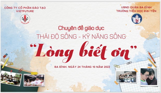 Vào ngày thứ 2 (24/10/2022) vừa qua, trường Tiểu học Đại Yên - Ba Đình và Công ty Cổ phần đào tạo Vietfuture đã phối hợp tổ chức buổi chuyên đề "Lòng Biết Ơn" dành cho học sinh toàn trường.
