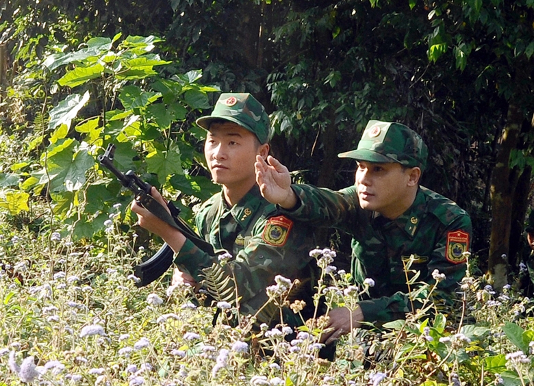 Bộ đội Biên phòng Việt Nam và Bộ đội Biên phòng Lào phối hợp tuần tra, đấu tranh phòng chống tội phạm khu vực biên giới (ảnh: Phạm Cường) |