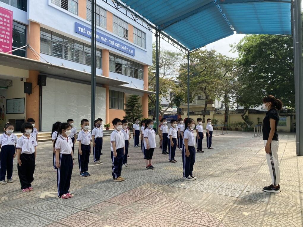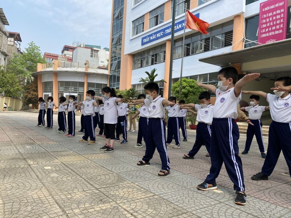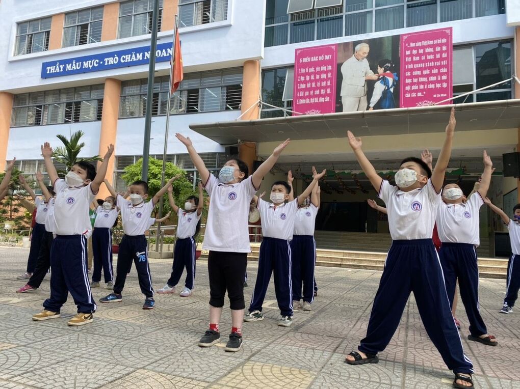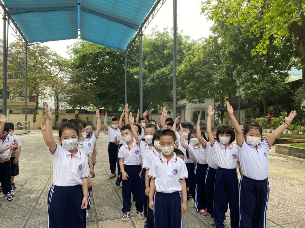 Một số hình ảnh tiết Thể dục của các bạn học sinh lớp 1