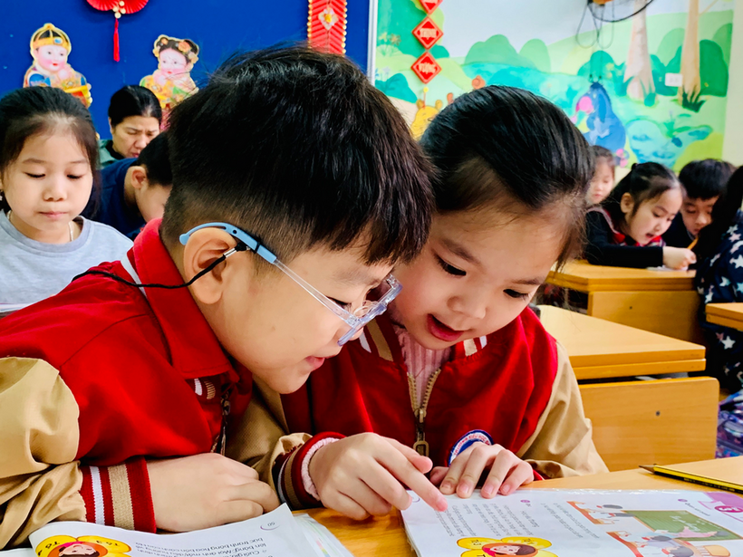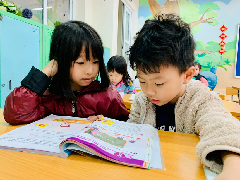 Đọc cả bài là khó nhất thế mà bạn nhỏ nào cũng xung phong để được đọc trước lớp.