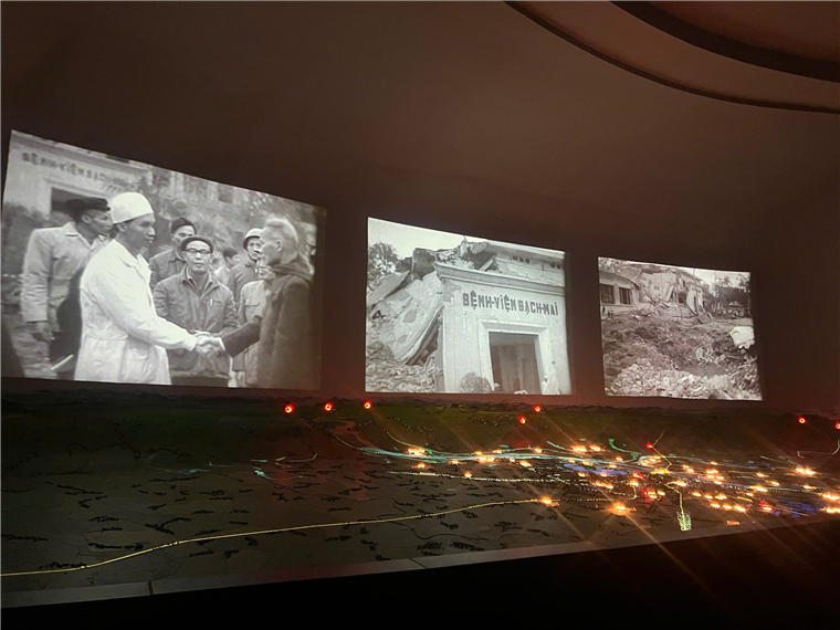 Đặc biệt bảo tàng còn có phòng sa bàn trình chiếu diễn biến cuộc chiến đấu khốc liệt trong 12 ngày đêm tháng 12/1972. Với thước phim tài liệu chân thực, sa bàn địa lý, không gian và lưới lửa phòng không Hà Nội cùng hệ thống âm thanh, tạo khói… như tái hiện lại trước mắt người xem hình ảnh chân thực toàn bộ diễn biến cuộc chiến.