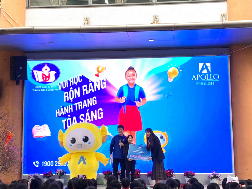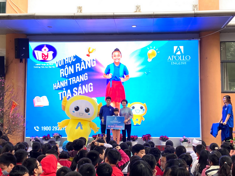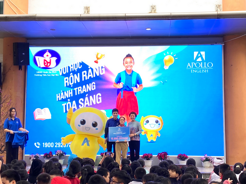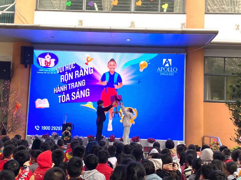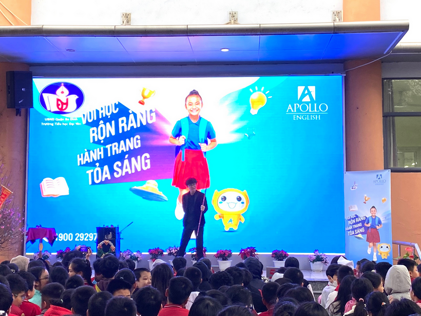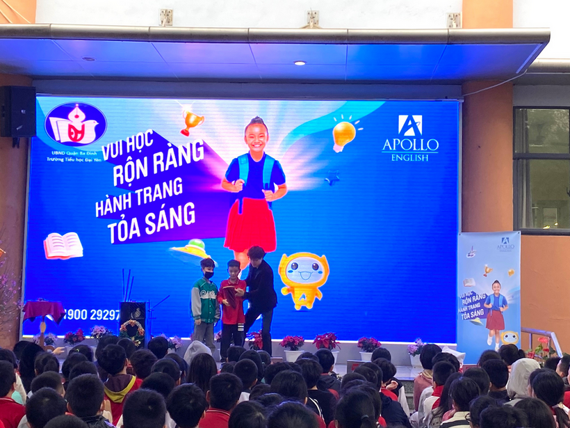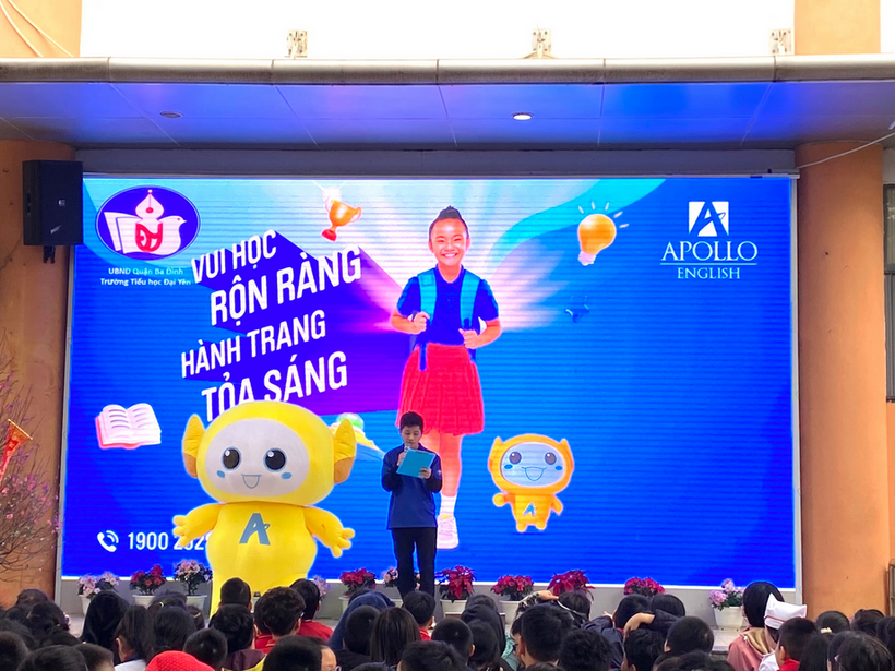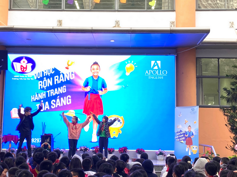 Kết hợp với không khí tưng bừng ấy, cũng trong buổi sáng ngày hôm nay, học sinh trường Tiểu học Đại Yên đã được tham gia chương trình giao lưu Tiếng Anh Apolo.