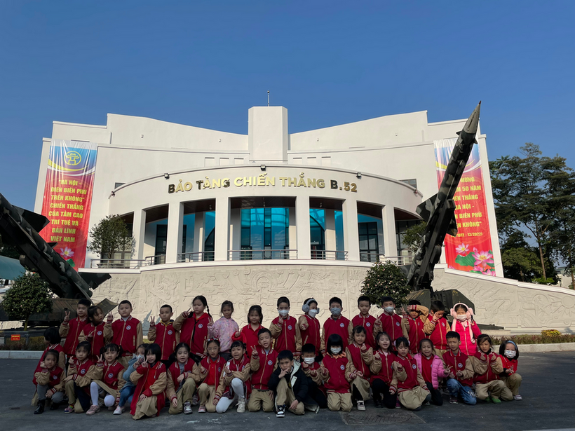Đến Bảo Tàng Chiến thắng B52, các bạn học sinh khối 1 tập trung nghe gịới thiệu thuyết minh sau đó các bạn được chia theo nhóm thăm quan tìm hiểu về các hiện vật, xem phim tư liệu Chiến thắng Điện Biên Phủ trên không – Chiến thắng Pháo Đài Bay B52…