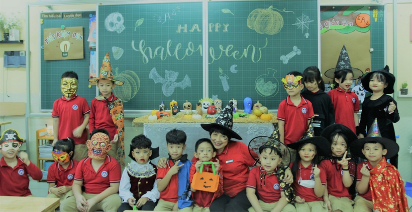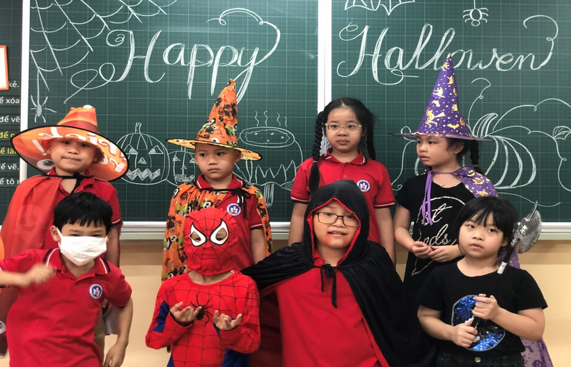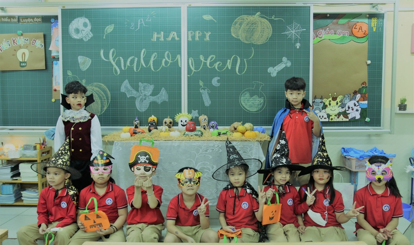Chúng mình cùng ngắm một số hình ảnh cô trò khối 2 đón Halloween nhé.