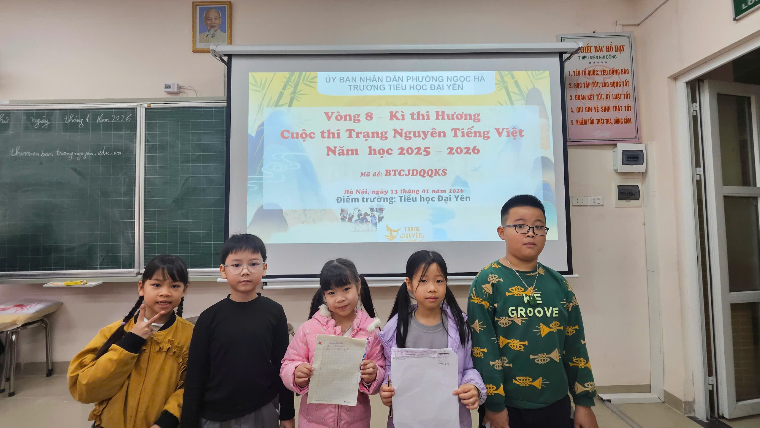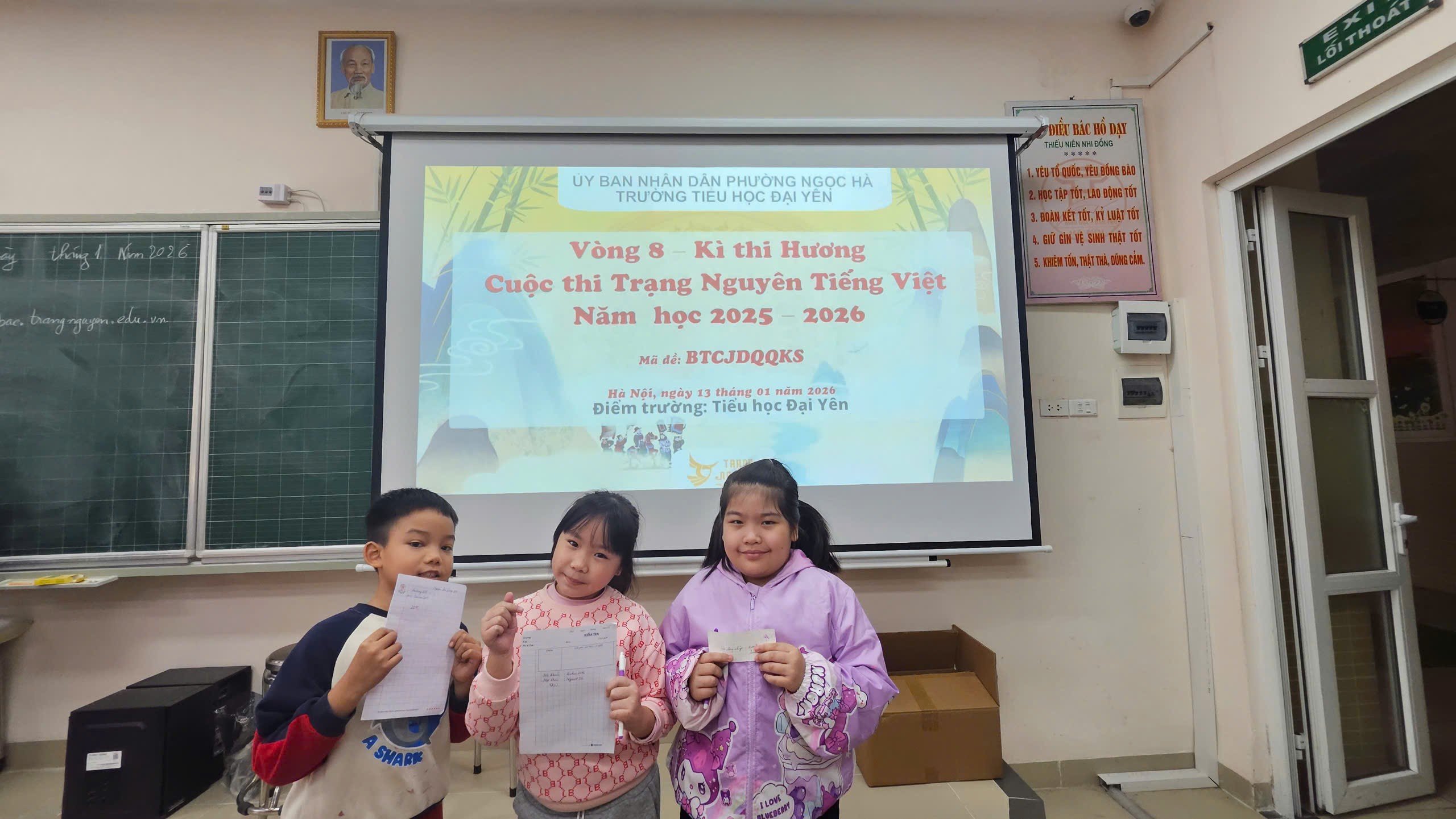 Sáng ngày 13/1/2026, học sinh Khối 2 Trường Tiểu học Đại Yên đã hào hứng tham gia Cuộc thi Trạng nguyên Tiếng Việt – vòng thi Hương. Ngay từ đầu buổi thi, các em đã có mặt đầy đủ, chuẩn bị tâm thế sẵn sàng, thể hiện sự tự tin và niềm vui khi được tham gia một sân chơi học tập bổ ích.
