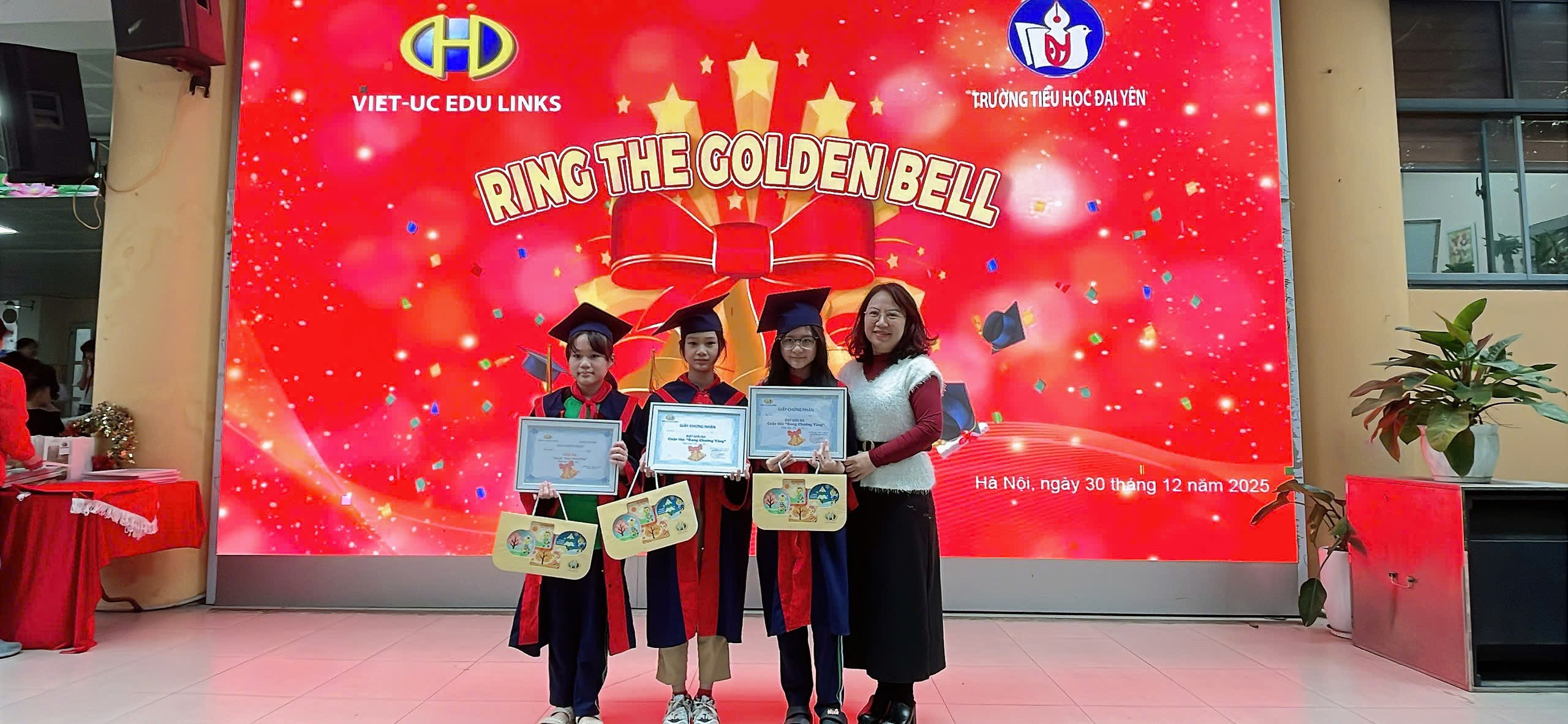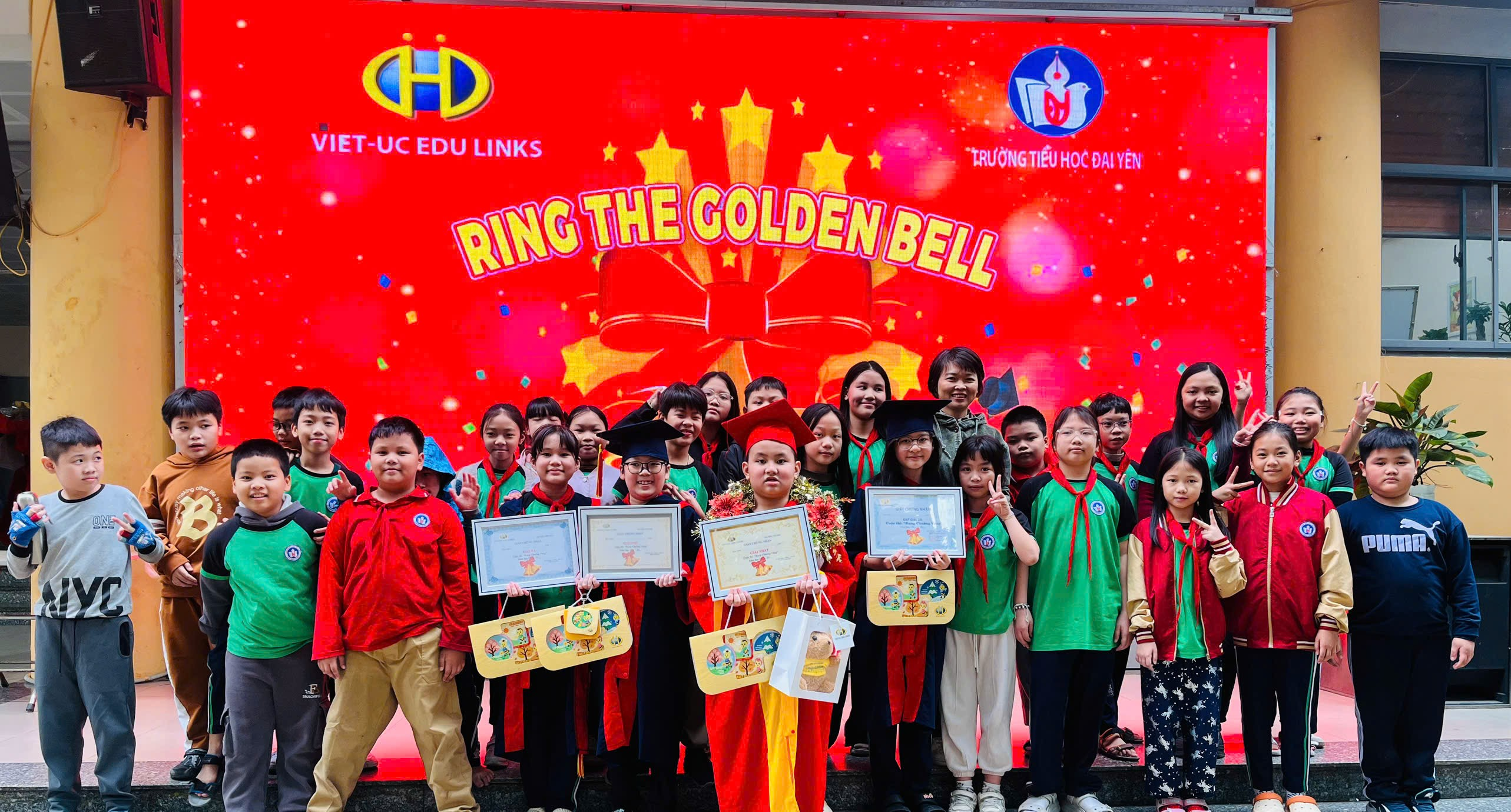 Như chúng ta đều biết, trong xu thế toàn cầu hóa, tiếng Anh dần trở thành một phần không thể thiếu của cuộc sống. Có khả năng tiếng Anh đồng nghĩa với việc bạn sở hữu trong tay một công cụ đắc lực cho việc học tập và là chìa khóa mở ra nhiều cơ hội khác. Ngày 30/12/2025 các bạn nhỏ khối lớp 5 trường Tiểu học Đại Yên rất hào hứng, phấn khởi khi được tham gia cuộc thi Rung chuông Vàng môn tiếng Anh được tổ chức tại sân trường. Không chỉ là sân chơi để các bạn trẻ so tài, mà cuộc thi còn là một nơi để các bạn nâng cao khả năng tư duy, tiếp thu những kiến thức mới và nhất là rèn giũa khả năng sử dụng tiếng Anh của mình.
