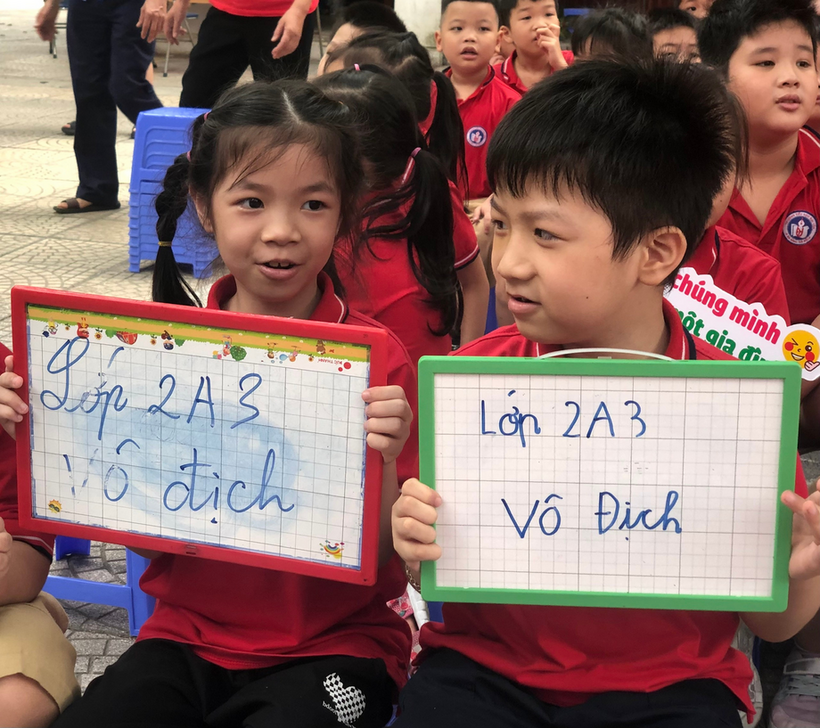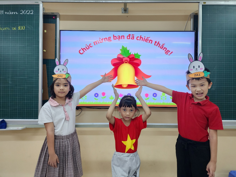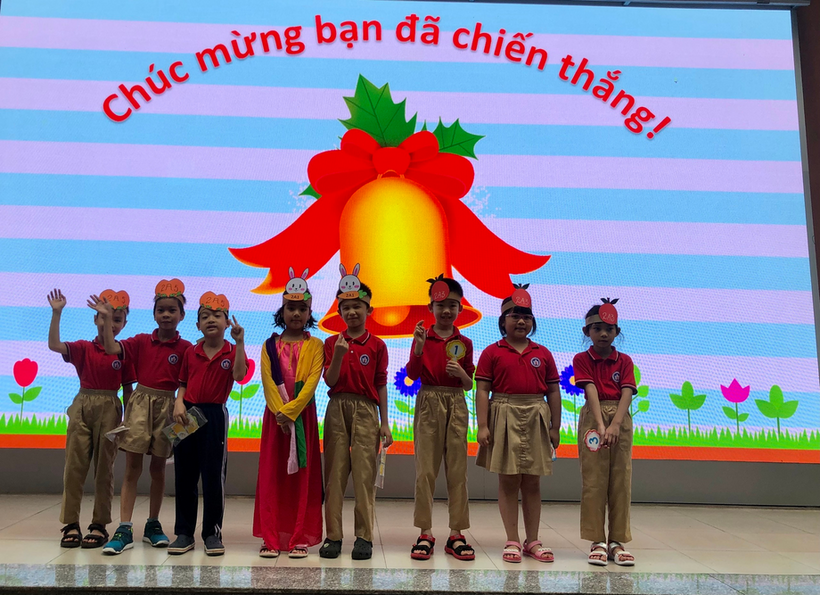 Tiếp đó, đại diện các bạn học sinh các lớp cùng nhau thi tài để rung được chuông vàng. Để rung được chuông vàng, các thí sinh cần cố gắng sử dụng kiến thức được học và vận dụng vốn hiểu biết.