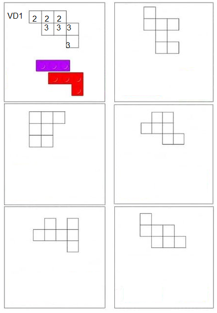 Bài 1: Em hãy ghép hình thích hợp vào hình vẽ, biết màu của các hình được mã hóa bởi những con số