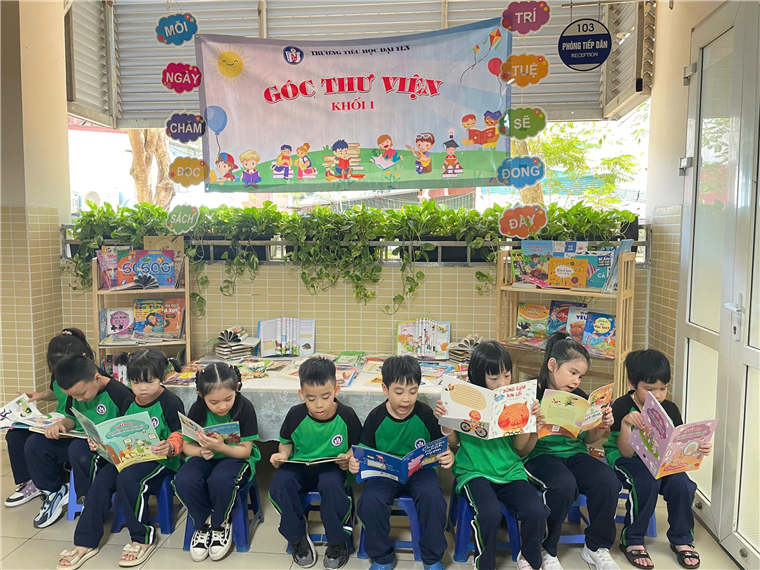 Với chủ đề “Sách – Người bạn đầu đời”, các em học sinh lớp 1 đã có một ngày trải nghiệm thú vị tại thư viện khối 1. Dưới sự hướng dẫn của các cô giáo, các em được lắng nghe những câu chuyện cổ tích quen thuộc, cùng nhau đọc những cuốn truyện tranh đầy màu sắc, và tham gia hoạt động vẽ tranh theo nội dung cuốn sách yêu thích. Dù còn nhỏ tuổi, nhưng các em đã thể hiện sự hào hứng, tò mò và thích thú khi được tiếp xúc với thế giới sách vở đầy kỳ diệu.