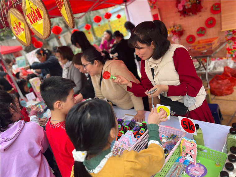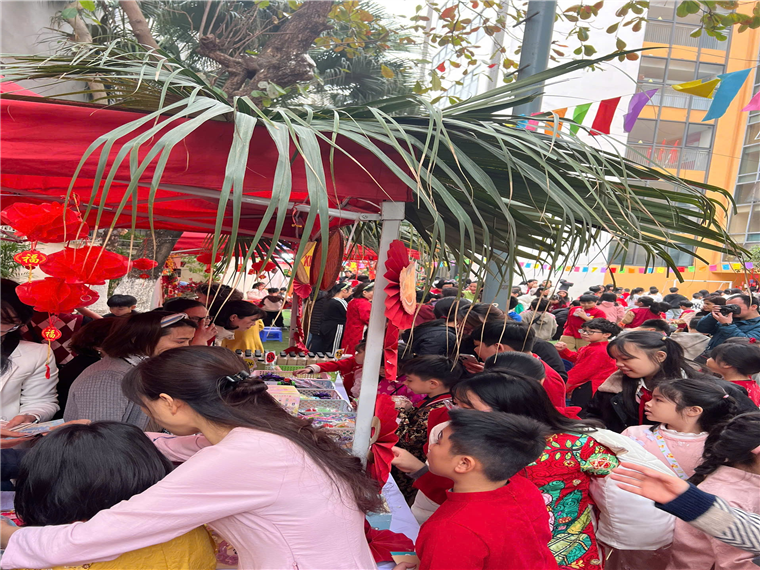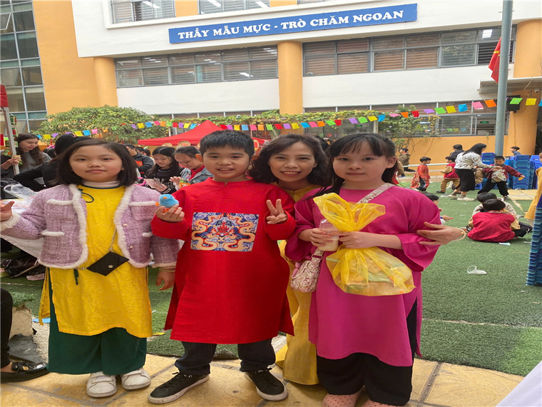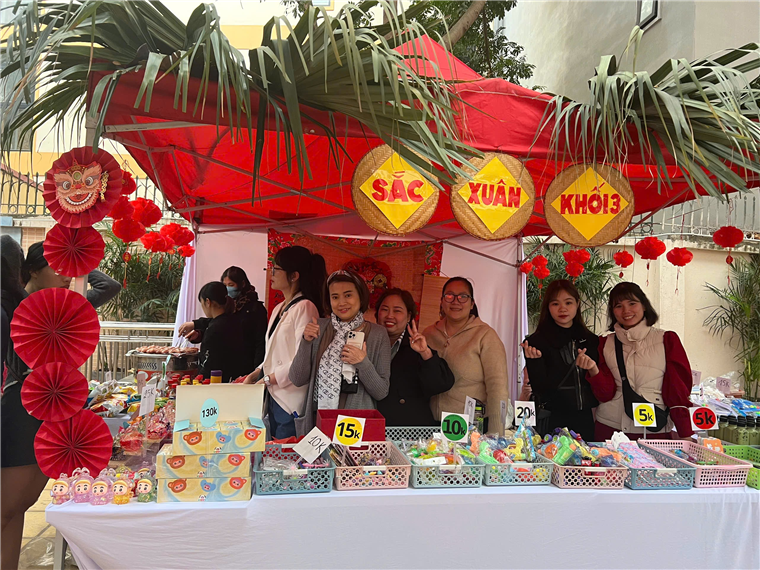 Cả trường ngập tràn trong sắc xuân với những gian hàng rực rỡ sắc màu. Nhìn những khuôn mặt vui vẻ, những ánh mắt ngập tràn niềm vui, sự háo hức chờ đón được tham gia Hội chợ Xuân của các anh chị khối 4,5, của các em học sinh khối 1, 2 và của tập thể các lớp khối 3 là niềm hạnh phúc của các cô.