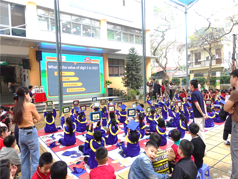 Cuộc thi đã diễn ra tốt đẹp với sự dẫn dắt hóm hỉnh và chuyên nghiệp của cô Bích Ngọc và thầy giáo Jame Cartwright đến từ Trung tâm Anh ngữ Việt-Úc. Trải qua các câu hỏi bổ ích, lý thú xoay quanh chủ đề cuộc sống hàng ngày và các vấn đề các con đã được học tập, ban tổ chức cuộc thi chọn ra được bạn giành giải nhất, giải nhì và giải ba. Giải thưởng tuy bình dị, không lớn về vật chất nhưng lại mang ý nghĩa sâu sắc về tinh thần, giúp các em vừa vui chơi giải trí sau những giờ học căng thẳng, lại góp phần cho các em củng cố, hiểu biết thêm kiến thức trong kho tàng tri thức to lớn của nhân loại. Niềm vui thể hiện rõ trong ánh mắt, nụ cười của cô và trò khi chụp hình tập thể các lớp phần kết hội thi.