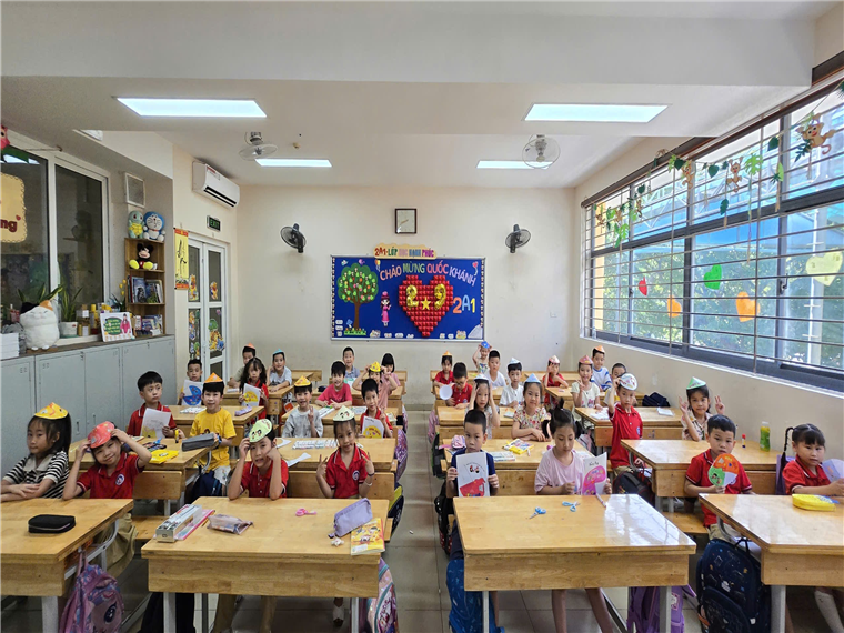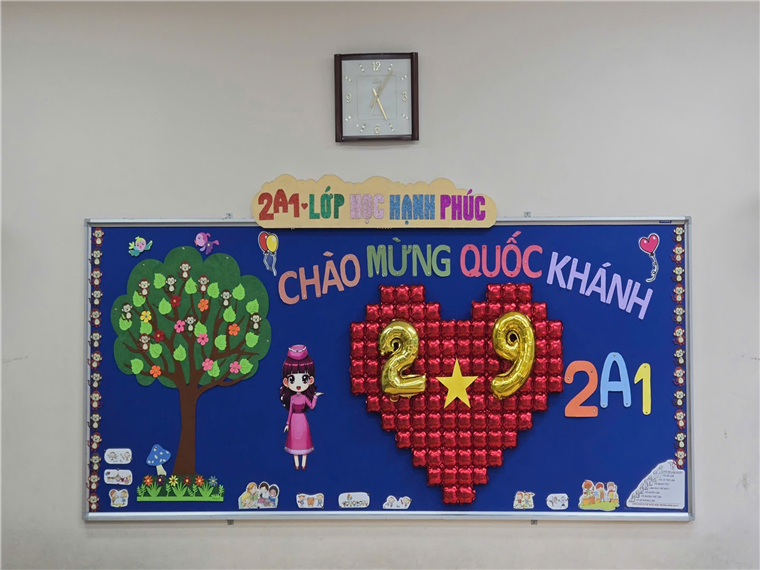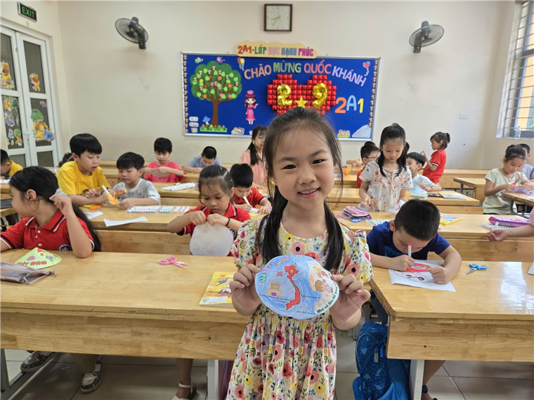 Không chỉ dừng lại ở những bức tranh, nhiều lớp học còn được khoác lên mình một diện mạo mới đầy ấn tượng. Những góc học tập quen thuộc bỗng trở nên lung linh hơn với những mô hình, những tấm bảng trang trí mang chủ đề 2/9. Các em đã tỉ mẩn cắt dán, sắp xếp để tạo nên một không gian vừa trang trọng, vừa gần gũi, như một lời nhắc nhở về giá trị của độc lập, tự do.