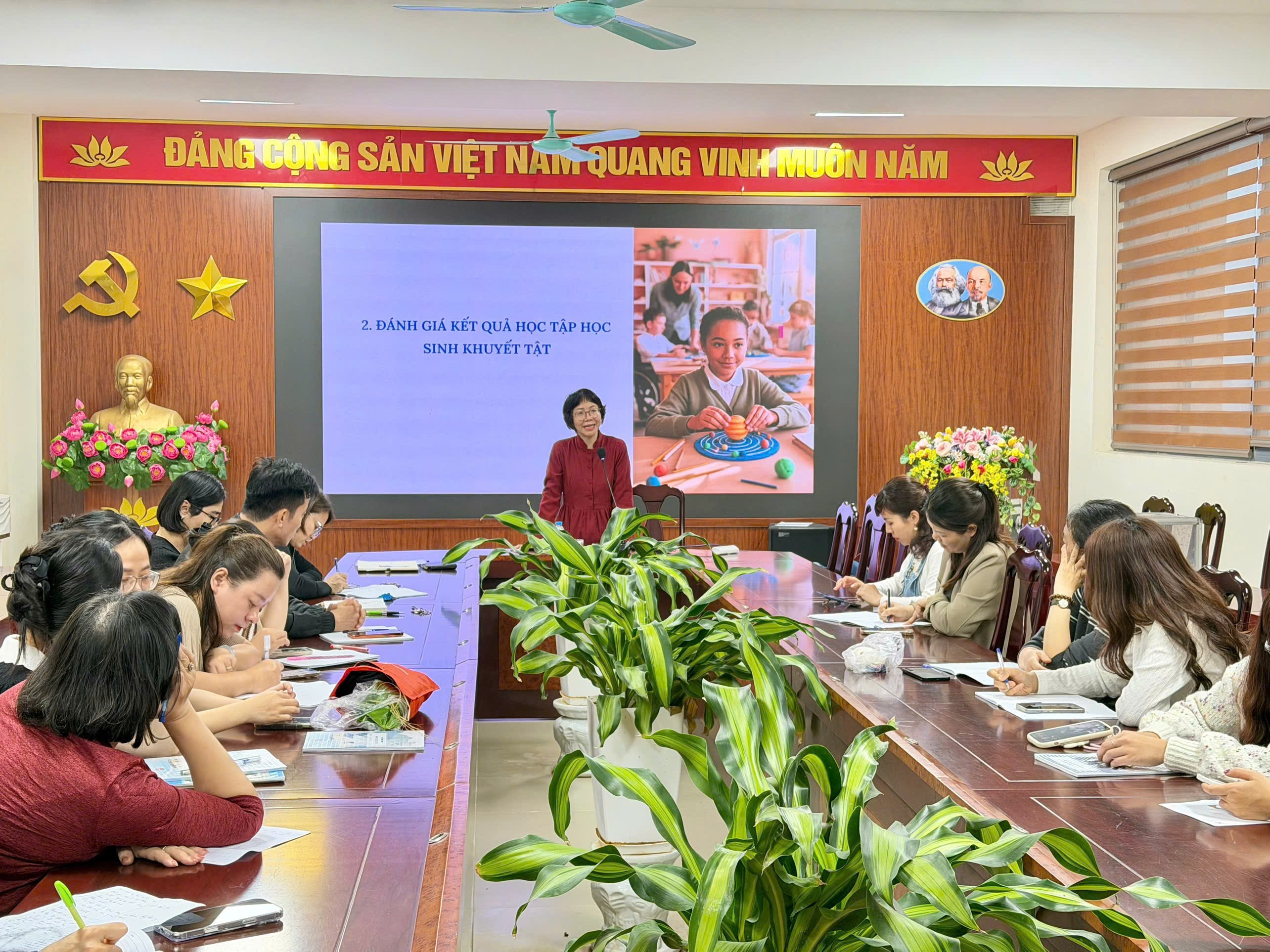 Nhằm nâng cao năng lực chuyên môn cho đội ngũ giáo viên, đặc biệt là giáo viên chủ nhiệm trực tiếp giảng dạy học sinh khuyết tật, nhà trường đã tổ chức buổi tập huấn chuyên đề về giáo dục hòa nhập vào ngày 12 tháng 12 năm 2025.