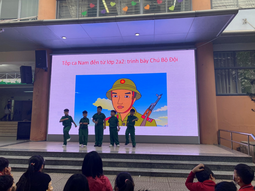 1. Văn nghệ chào mừng: bài hát “Chú bộ đội” được thể hiện bởi tốp ca nam và Màn nhảy hiện đại của CLB nhà trường.