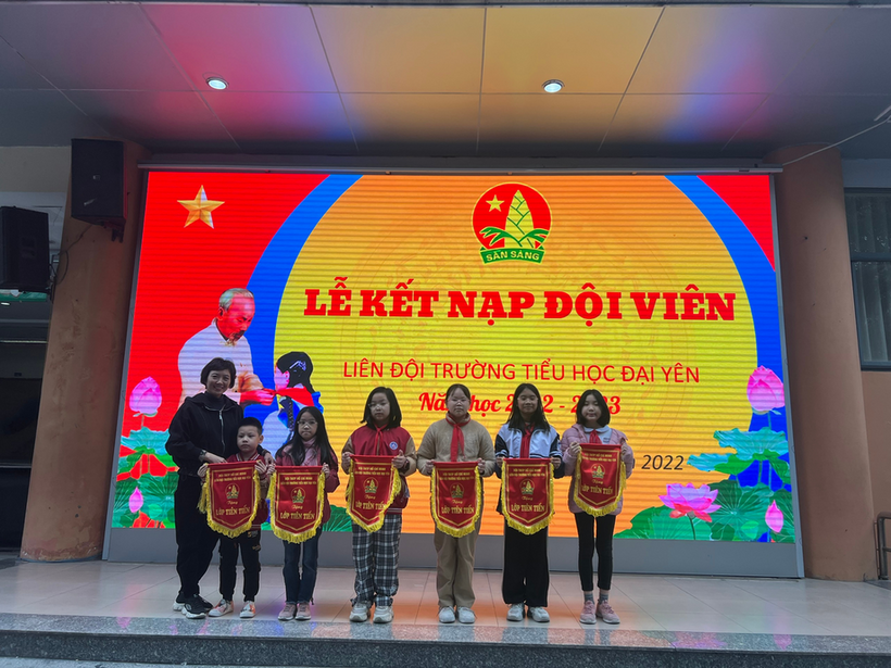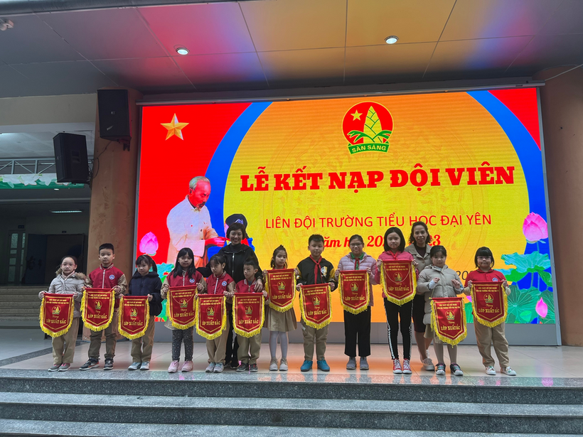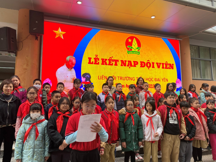 3. Lễ kết nạp Đội viên mới: Để chào mừng lễ kỉ niệm 50 năm Chiến thắng “ Hà Nội - Điện Biên Phủ trên không), Liên đội TH Đại Yên đã thi đua lập nhiều thành tích trong các phong trào, đặc biệt là các chi đội đã chọn ra những học sinh tiêu biểu để kết nạp Đội vào đợt này