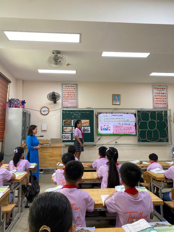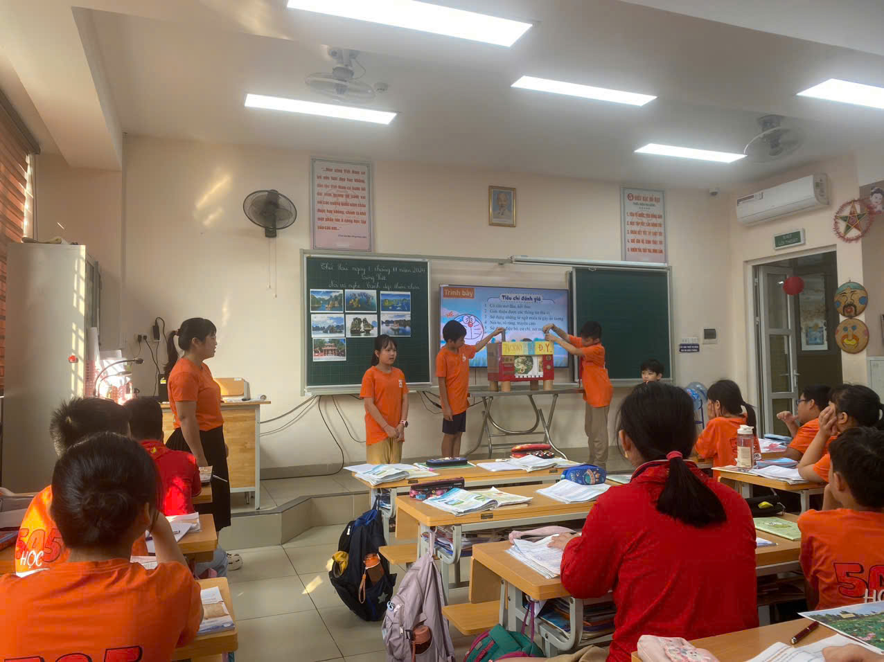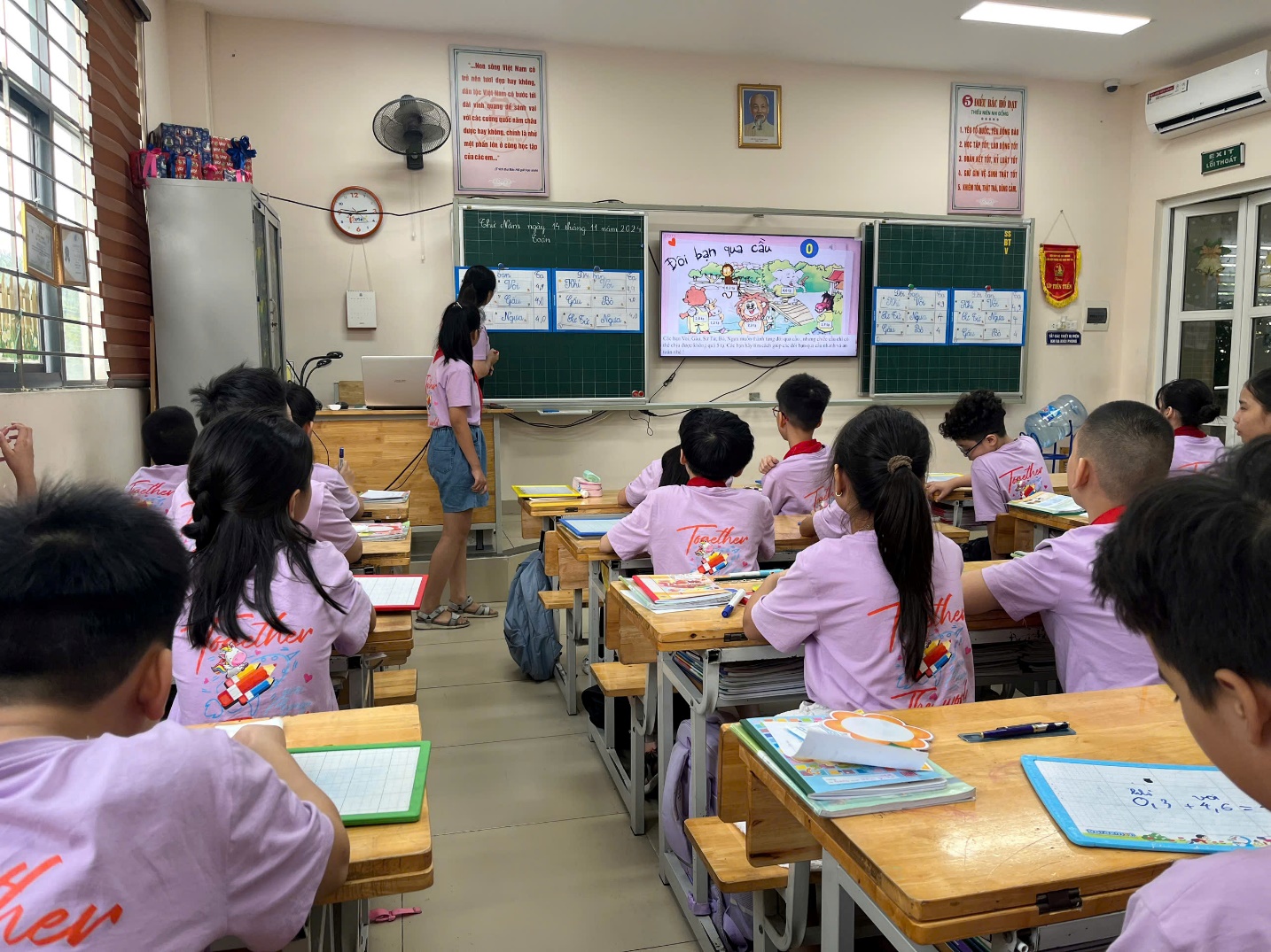 Một trong những phương pháp hiệu quả mà các thầy cô giáo khối 5 đã áp dụng là sử dụng video clip trong bài giảng như tiết Nói và nghe, Khoa học, Lịch sử - Địa lý, Toán, ...Việc này không chỉ giúp minh họa sinh động các nội dung lý thuyết khô khan mà còn giúp các em dễ dàng tiếp thu kiến thức hơn. Ngoài ra, việc ứng dụng STEM (Khoa học, Công nghệ, Kỹ thuật và Toán học) cũng đã mang lại những trải nghiệm thực tế và sáng tạo cho các em học sinh.