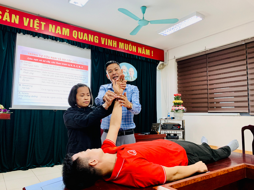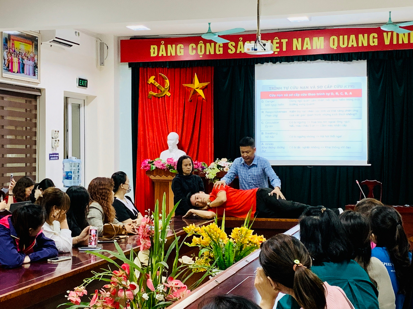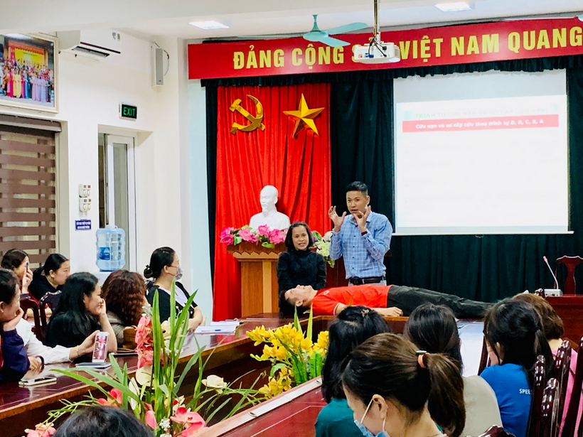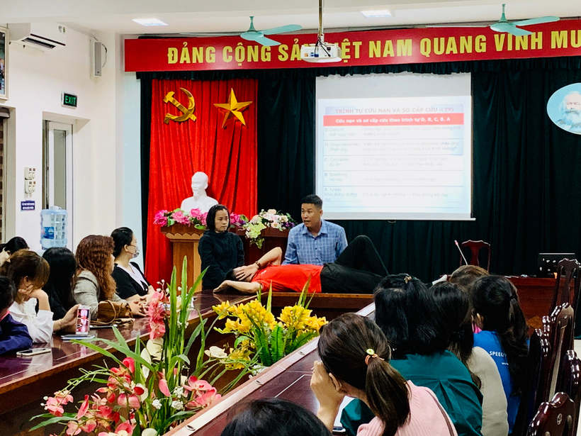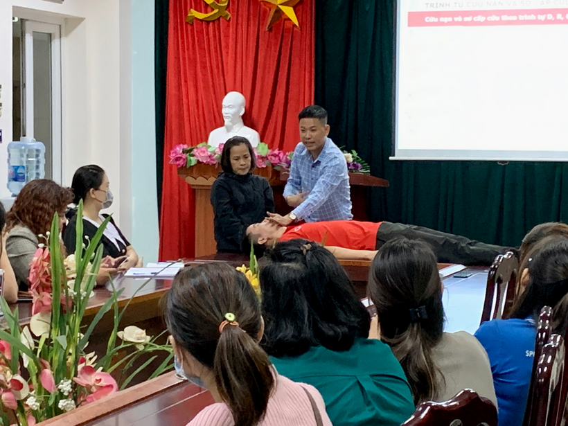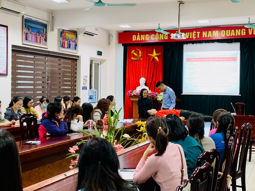 Tại buổi tập huấn, với phần hướng dẫn ngắn gọn, dễ hiểu, phần minh họa rõ nét, dễ áp dụng vào thực tế, giảng viên Phạm Quốc Đạt đã hướng dẫn CB-GV-NV cùng PHHS các nội dung: Cách xử lí khi bị thương, làm thế nào để cầm máu nhanh và an toàn nhất; Cách phòng chống và xử lí khi hóc dị vật; Cách xử lí đuối nước; Cách xử lí khi bị sốt cao co giật.