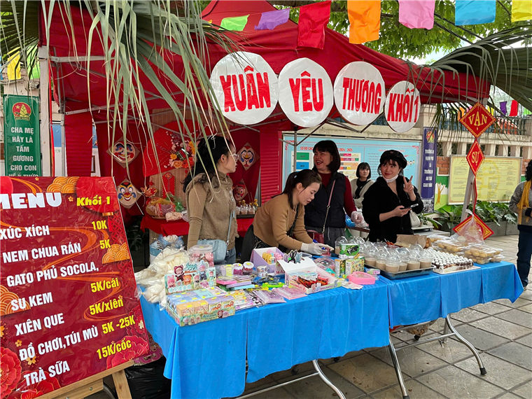 Học sinh khối 1, dù còn nhỏ, nhưng đã rất hào hứng tham gia vào chương trình này. Các con được tham gia mua sắm tại các gian hàng. Các gian hàng không chỉ hấp dẫn về mặt sản phẩm mà còn về sự sáng tạo trong cách trang trí, mang đến một không gian rộn ràng, đầy màu sắc, khiến các con cảm thấy như được bước vào một hội chợ thật sự.