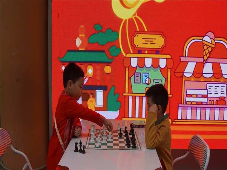 Bên cạnh các gian hàng mua sắm, hội chợ còn tổ chức các trò chơi như nhảy sạp, cờ vua,… tạo không khí vui tươi, ấm áp cho các con. Các hoạt động này không chỉ giúp các con thư giãn mà còn thắt chặt tình bạn, đồng thời giúp các con hiểu thêm về những giá trị truyền thống của dân tộc.
