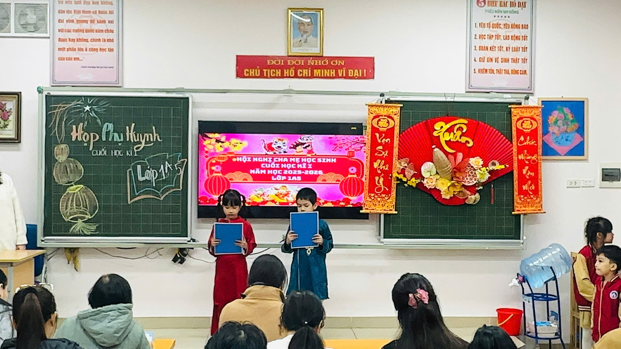 Một điểm nhấn đặc biệt của buổi họp là các em học sinh khối 1 đã tự mình đảm nhiệm vai trò MC. Dưới sự hướng dẫn tận tình của thầy cô, các em nhỏ mới bỡ ngỡ vào lớp 1 ngày nào nay đã tự tin dẫn dắt chương trình bằng giọng nói trong trẻo, lễ phép, thể hiện sự trưởng thành rõ nét ngay từ những năm học đầu đời.