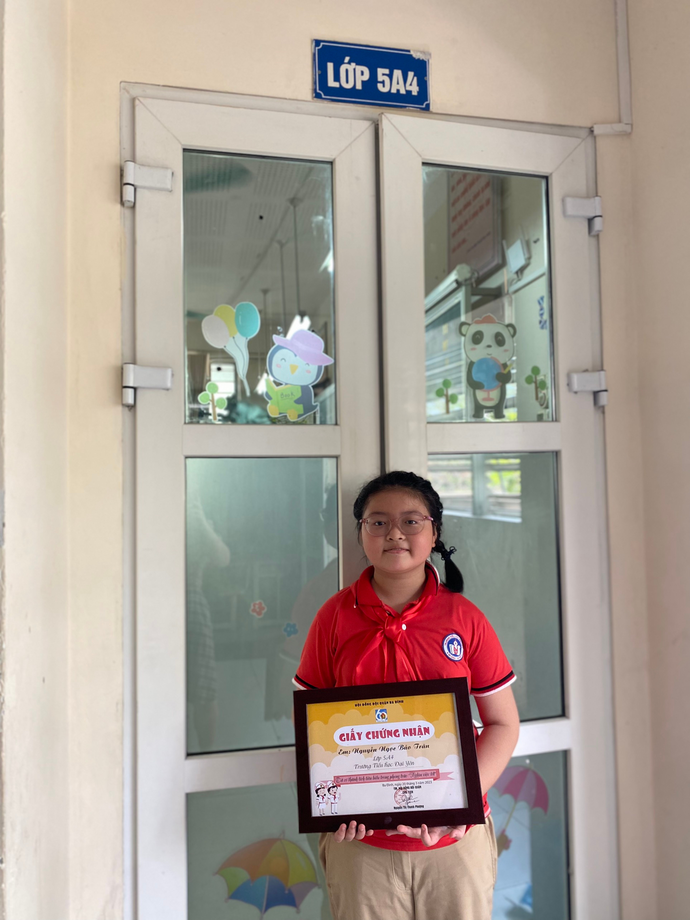 Học sinh Nguyễn Ngọc Bảo Trân, lớp 5A4 vinh dự được Hội đồng Đội quận Ba Đình khen thưởng là học sinh đã có thành tích tiêu biểu trong phong trào “Nghìn việc tốt”.