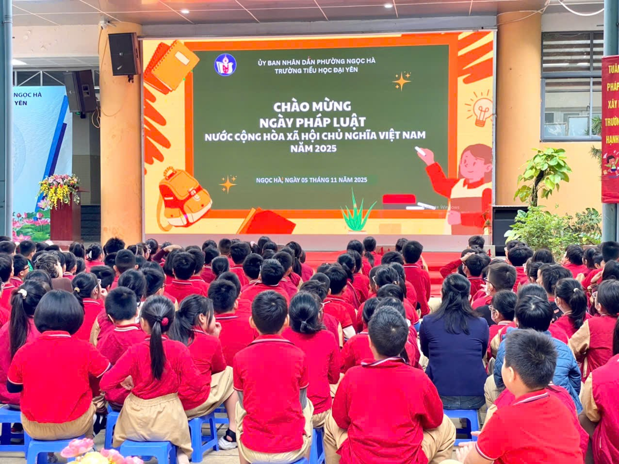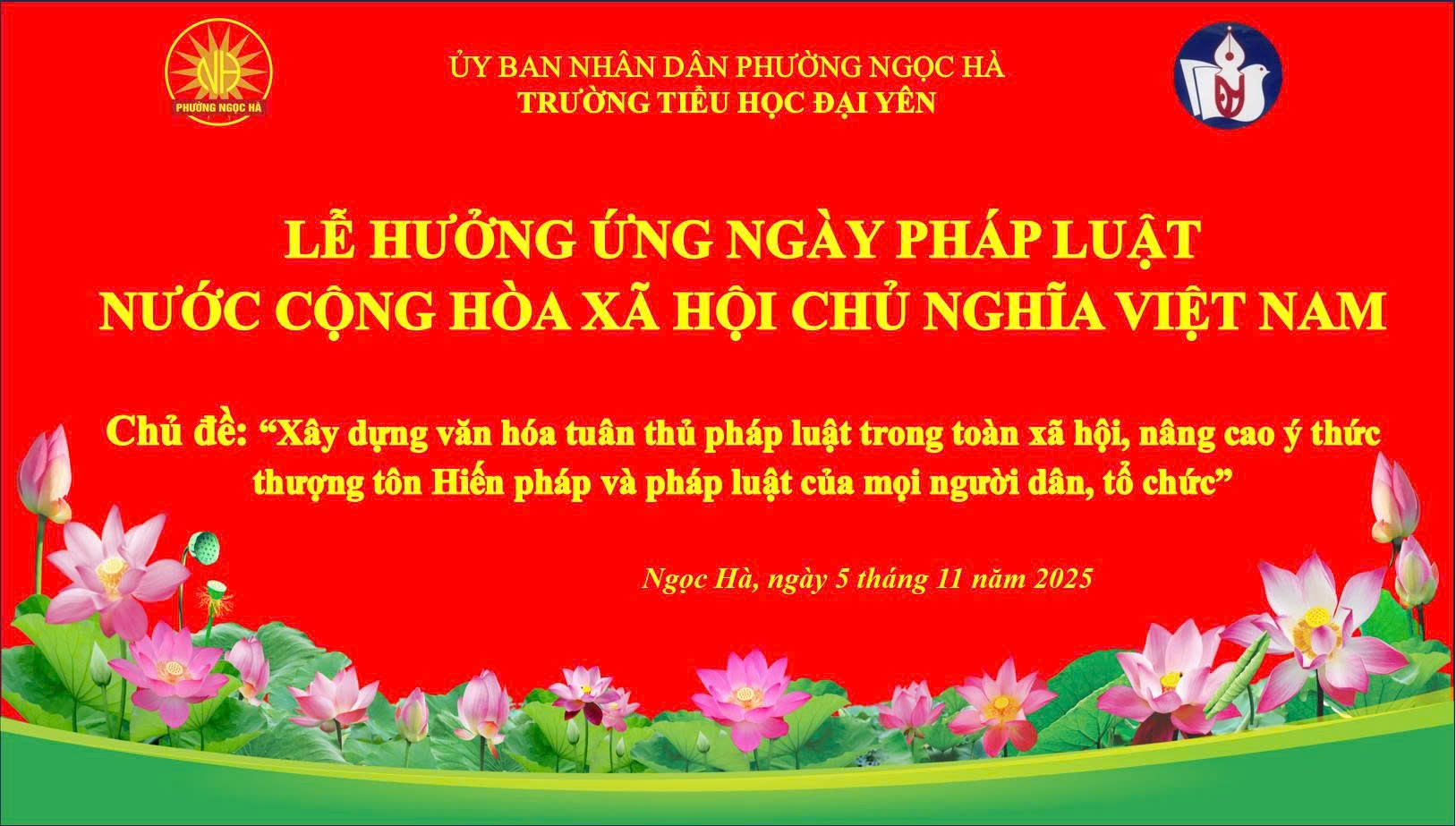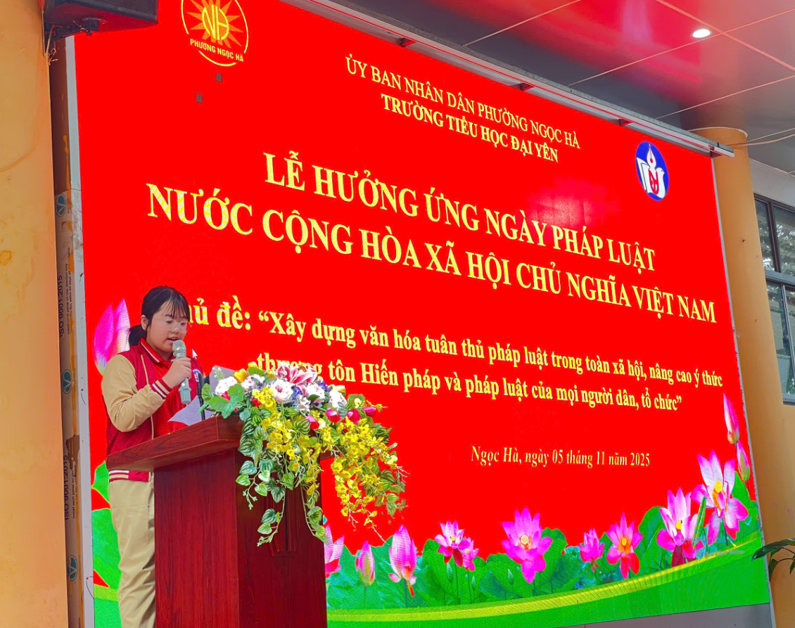 Thực hiện hiện Kế hoạch số 228/ VHXH ngày 17/10/2025 của UBND phường Ngọc Hà về hưởng ứng “Ngày Pháp luật nước Cộng hòa XHCN Việt Nam” trong các trường học trên địa bàn phường năm 2025. Chiều 05/11/2025, trường Tiểu học Đại Yên long trọng tổ chức Lễ hưởng ứng “Ngày pháp luật nước Cộng hòa XHCN Việt Nam” năm 2025.