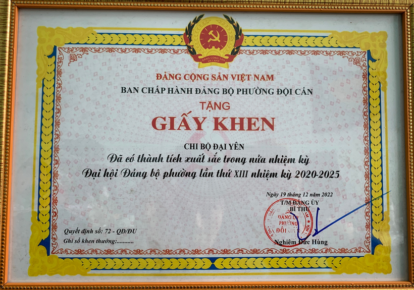 Ghi nhận những cố gắng của chi bộ, Đảng bộ phường Đội Cấn đã trao tặng chi bộ Đại Yên danh hiệu “ Chi bộ hoàn thành xuất sắc nhiệm vụ năm 2022” và 05 đồng chí đảng viên xếp loại “Hoàn thành xuất sắc nhiệm vụ năm 2022”.