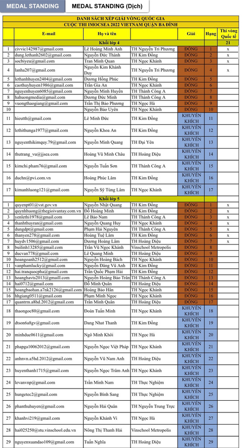 HS Nguyễn Minh Quang A đã tham dự Vòng Chung kết quốc gia Kỳ thi Olympic Toán và Khoa học quốc tế SEA 2022 theo hình thức trực tuyến vào ngày 28/9, đạt Giải Khuyến Khích cấp Quốc gia.