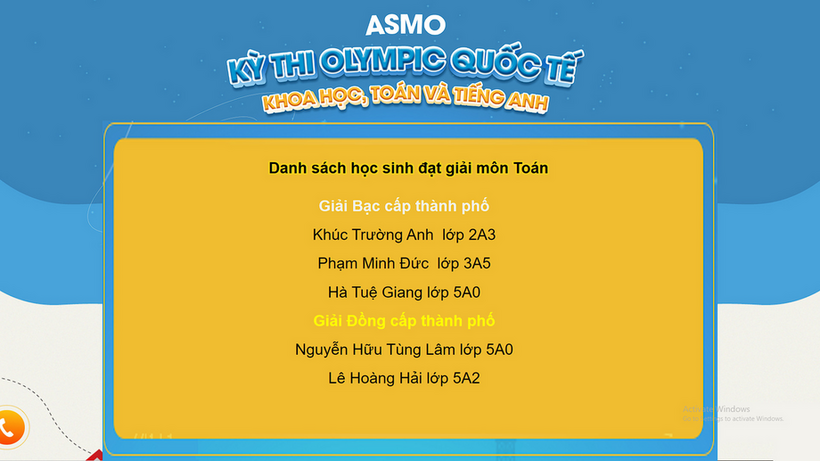 Và giải giải ASMO (giải Bạc) của cuộc thi Olympic Quốc tế Khoa học, Toán và Tiếng Anh - ASMO 2022 là thành quả của sự cố gắng, quyết tâm của em và cũng là niềm tự hào của cả nhà trường, của gia đình.