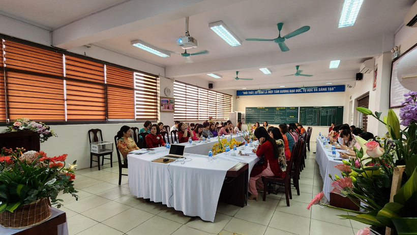 Về dự với Đại hội có đồng chí Bùi Thị Anh Hoà – Uỷ viên thường vụ Liên đoàn Lao động quận Ba Đình, ban giám hiệu cùng toàn thể các cán bộ giáo viên, nhân viên nhà trường.