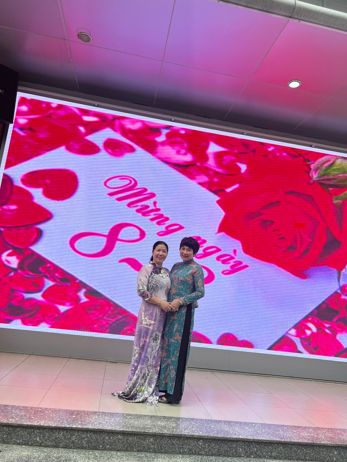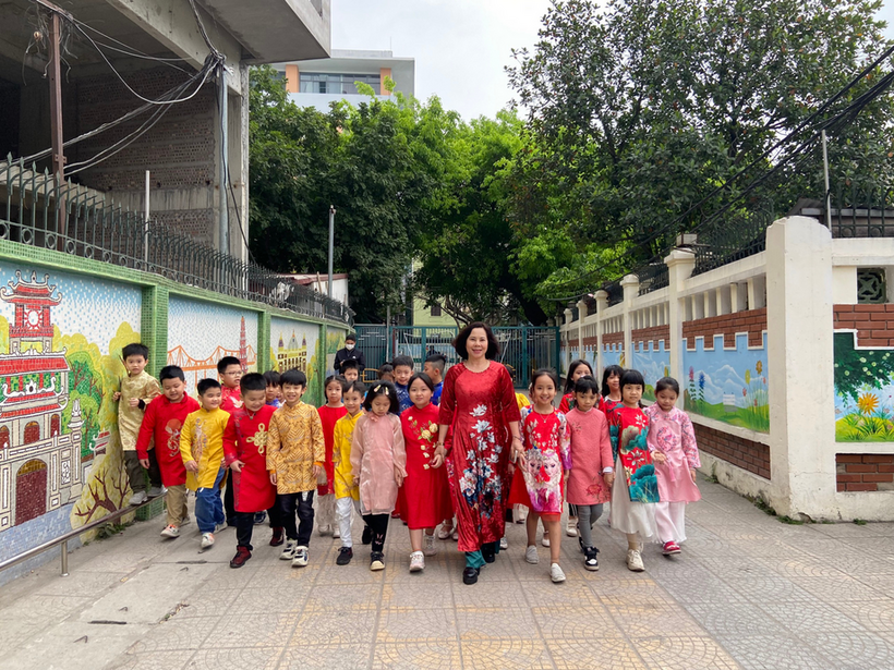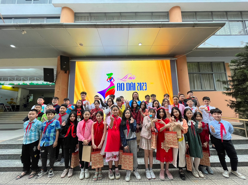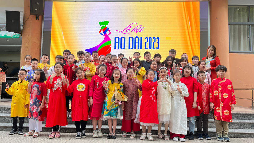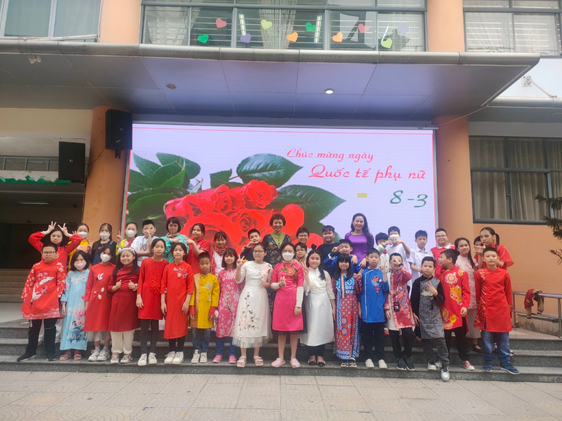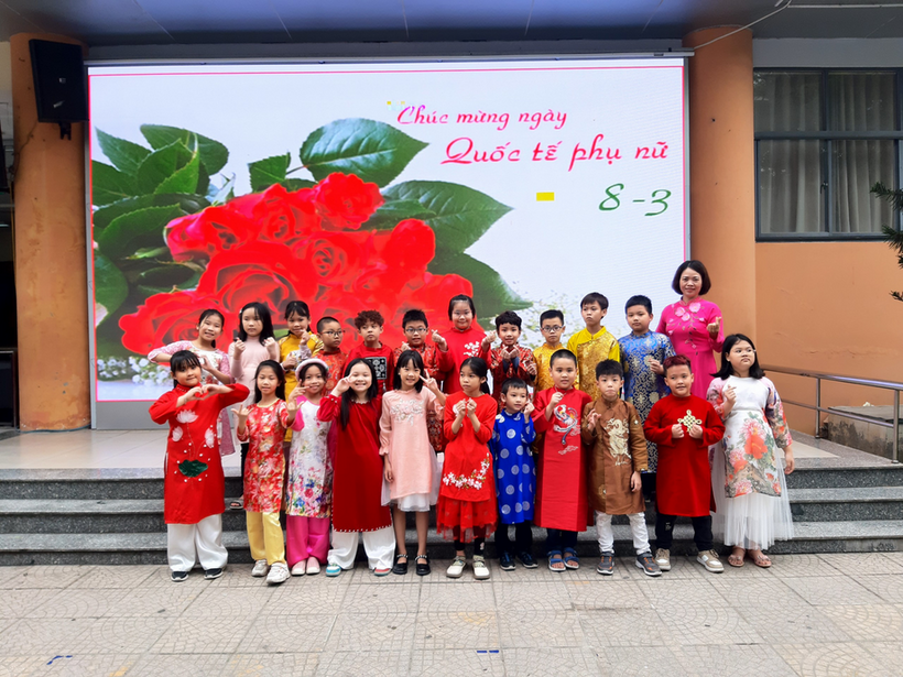 Những bông hoa áo dài của các em học sinh đã mang đến tặng các cô giáo trong ngày 8 tháng 3. Khi mặc lên mình tà áo dài Việt Nam, không chỉ người lớn mà cả các bạn nhỏ đều tôn lên vẻ đẹp dịu hiền. Các em học sinh có thể đã quen thuộc với hình ảnh cô giáo mình mặc chiếc áo dài thướt tha ân cần chỉ bảo các em, nhưng hôm nay, cô và trò cùng nhau mặc lên mình tà áo dài truyền thống ấy thì tình cô trò như gần gũi hơn. Các con học sinh nắm tay cô, nở những nụ cười xinh xắn, khoảnh khắc thật đáng nhớ!