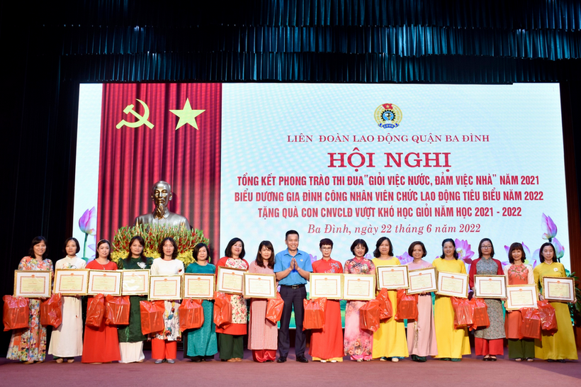 Hội nghị đã ghi tuyên dương và khen thưởng 80 nữ CNVCLĐ “Giỏi việc nước, Đảm việc nhà” tiêu biểu năm 2021 cùng 95 Gia đình CNVCLĐ tiêu biểu đã có nhiều thành tích trong thi đua lao động sản xuất và công tác, đóng góp tích cực vào phong trào công nhân và xây dựng tổ chức công đoàn vững mạnh.