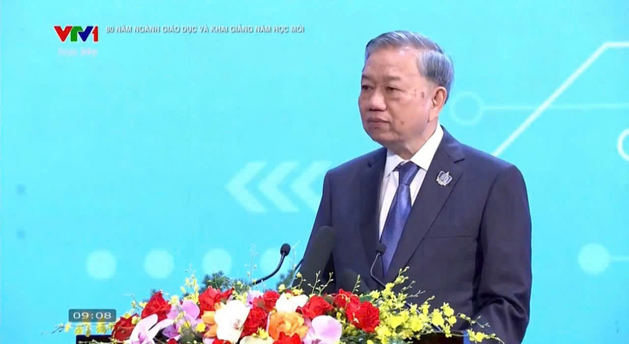Đồng chí Tổng Bí thư – Tô Lâm đọc quyết định trao huân chương Lao động hạng nhất cho ngành giáo dục