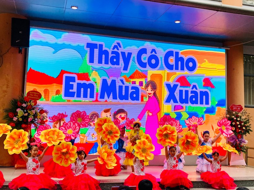 Mở đầu chương trình là những tiết mục văn nghệ đặc sắc nhất do các bạn nhỏ trong đội văn nghệ của trường biểu diễn.