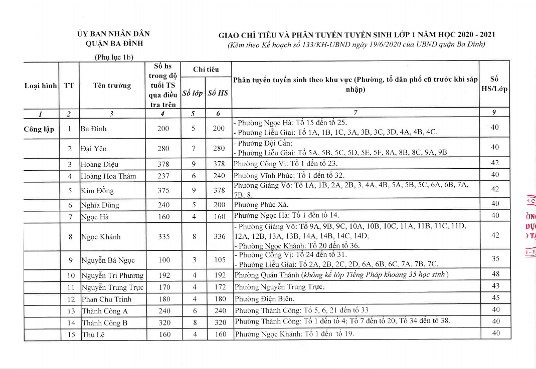 Tuyển sinh vào các trường Mầm non,Lớp 1,Lớp 6 năm học 2020-2021 trên địa bàn quận Ba Đình