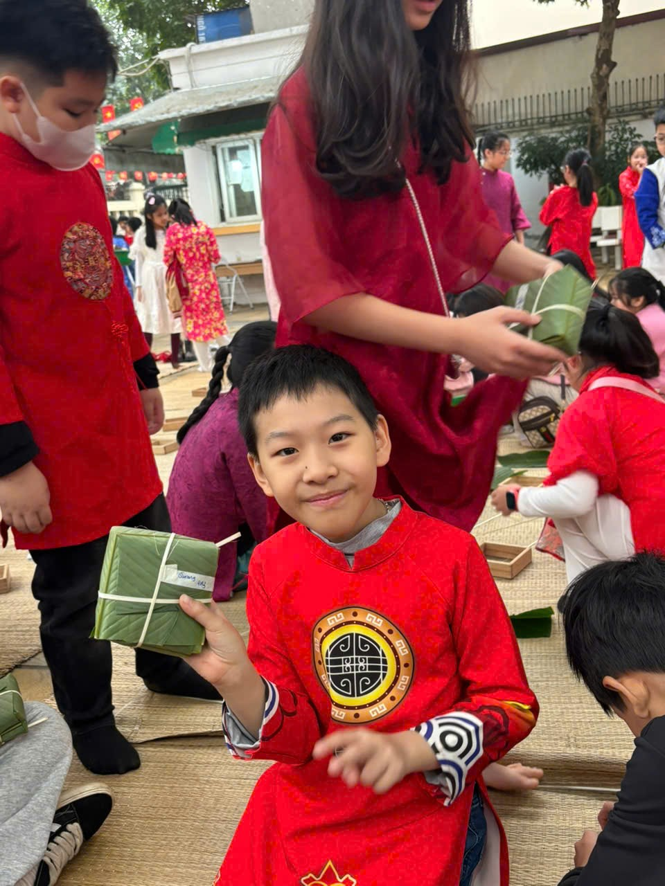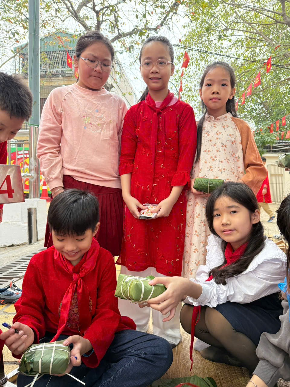 Khi những chiếc bánh chưng chín thơm, cả sân trường như vỡ òa trong niềm vui. Các bạn nâng niu chiếc bánh do chính tay mình làm ra, vừa ngắm nghía vừa khoe với bạn bè. Nụ cười rạng rỡ hiện rõ trên từng gương mặt, bởi đó không chỉ là chiếc bánh, mà còn là kỷ niệm đẹp của một ngày lễ hội đáng nhớ.