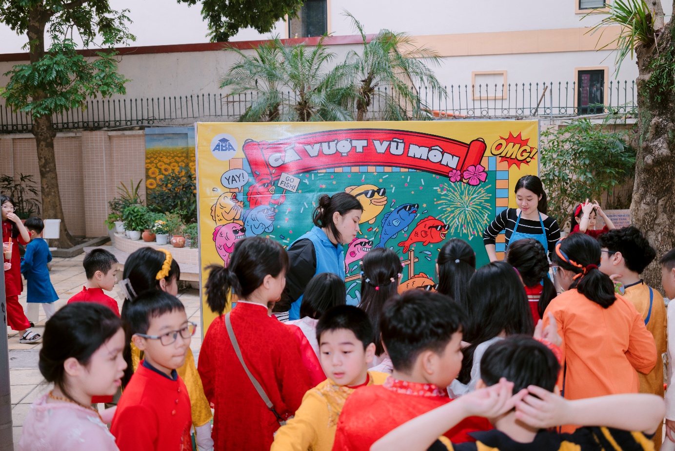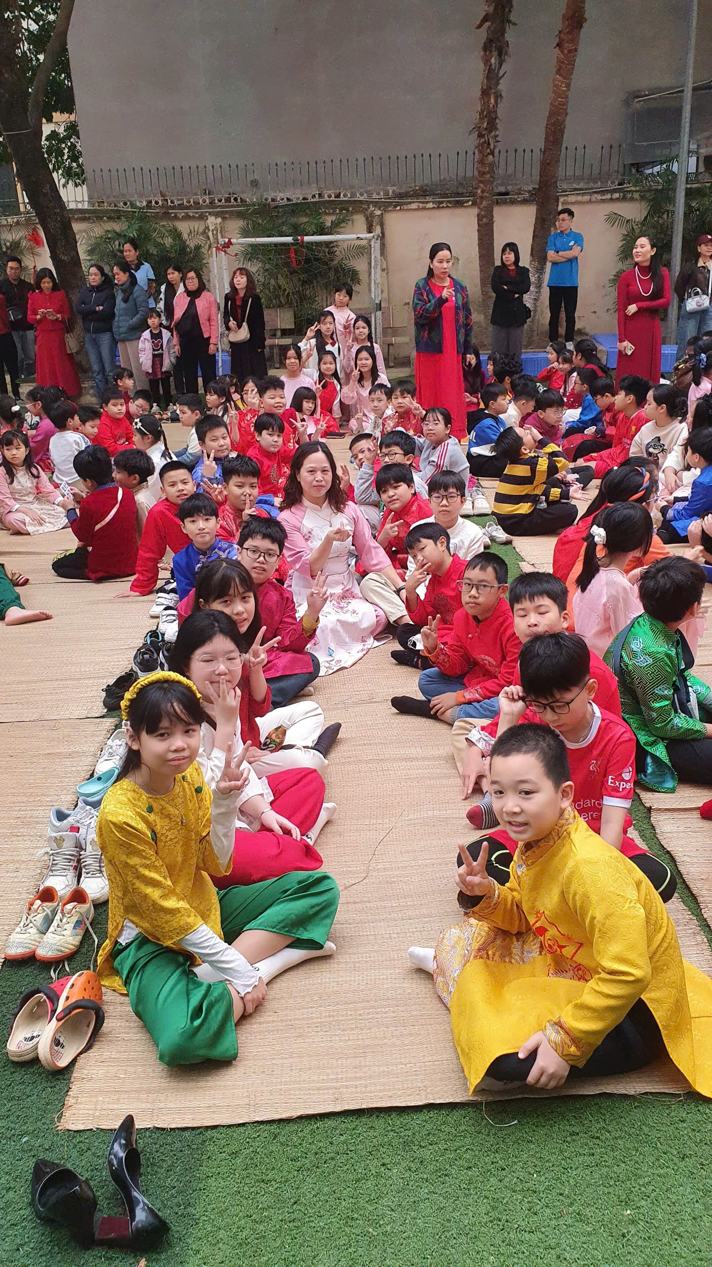 Để làm phong phú thêm lễ hội, nhà trường còn tổ chức nhiều trò chơi dân gian như vòng quay mắn mắn, nhảy bao bố, cá vượt vũ môn, trống hội Thăng Long… Bầu không khí rộn ràng, tiếng reo hò cổ vũ tạo nên một sân chơi đầy ắp tiếng cười. Đây là hoạt động giúp các em hiểu hơn về đời sống văn hóa dân gian của cha ông, đồng thời rèn luyện sự nhanh nhẹn, tinh thần đoàn kết và ý thức kỷ luật.