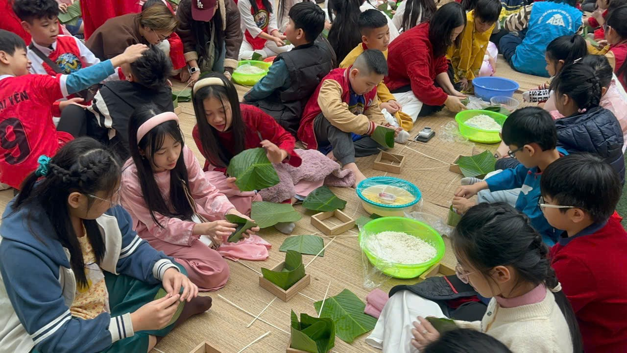 Hoạt động không chỉ giúp các em hiểu thêm về ý nghĩa bánh chưng – biểu tượng của đất trời và lòng biết ơn tổ tiên – mà còn rèn luyện sự kiên trì, kỹ năng làm việc nhóm.