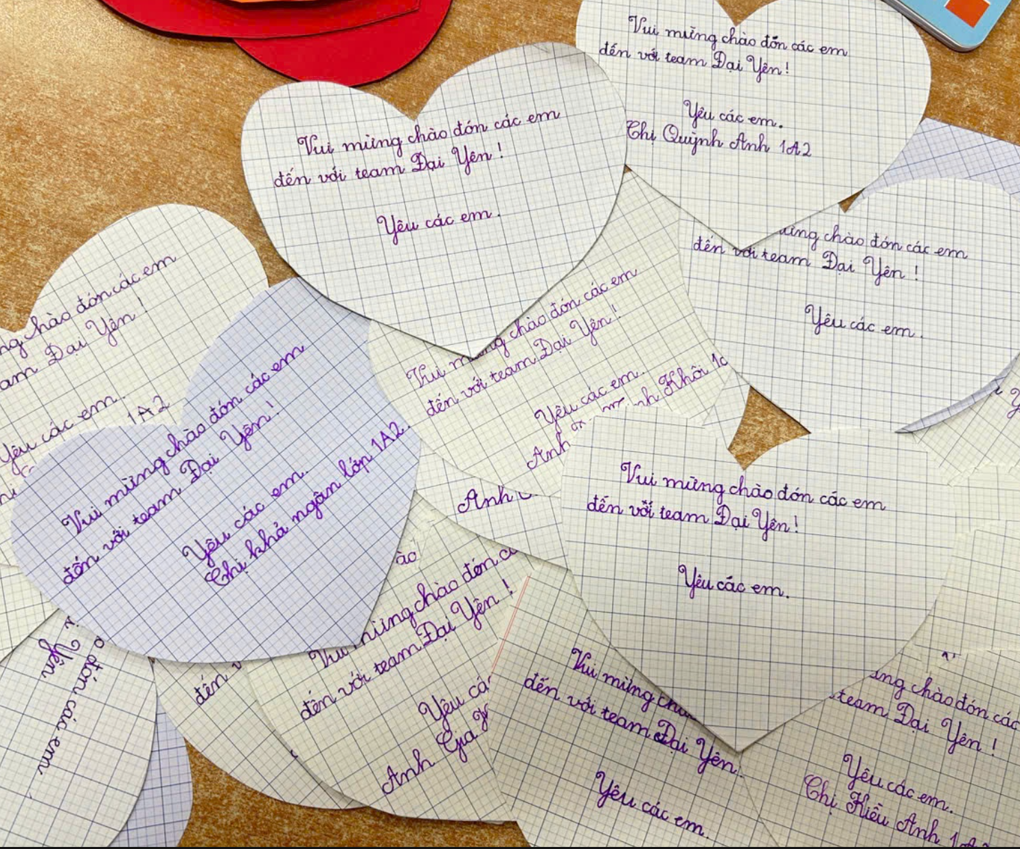 Những tấm thiệp xinh xắn được các anh chị lớp 1 nắn nót viết tặng các em gửi gắm bao tình cảm, chào đón các em tới với ngôi nhà Đại Yên.