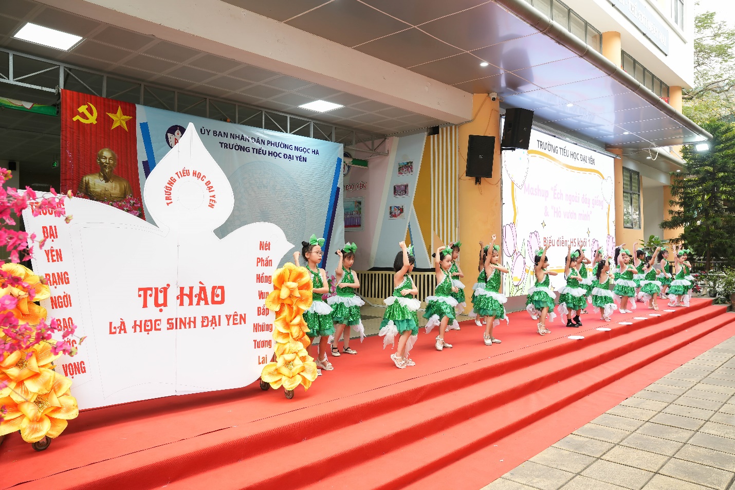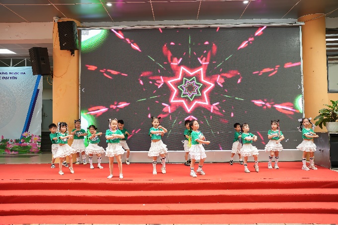 Chương trình văn nghệ diễn ra sôi nổi với nhiều tiết mục đặc sắc do học sinh khối 1 và câu lạc bộ nhảy của trường Tiểu học Đại Yên biểu diễn. Đặc biệt, hai tiết mục đến từ Trường Mầm non Số 10 đã mang đến màu sắc tươi mới, thể hiện sự tự tin, năng động của các bé, nhận được sự cổ vũ nhiệt tình từ khán giả.