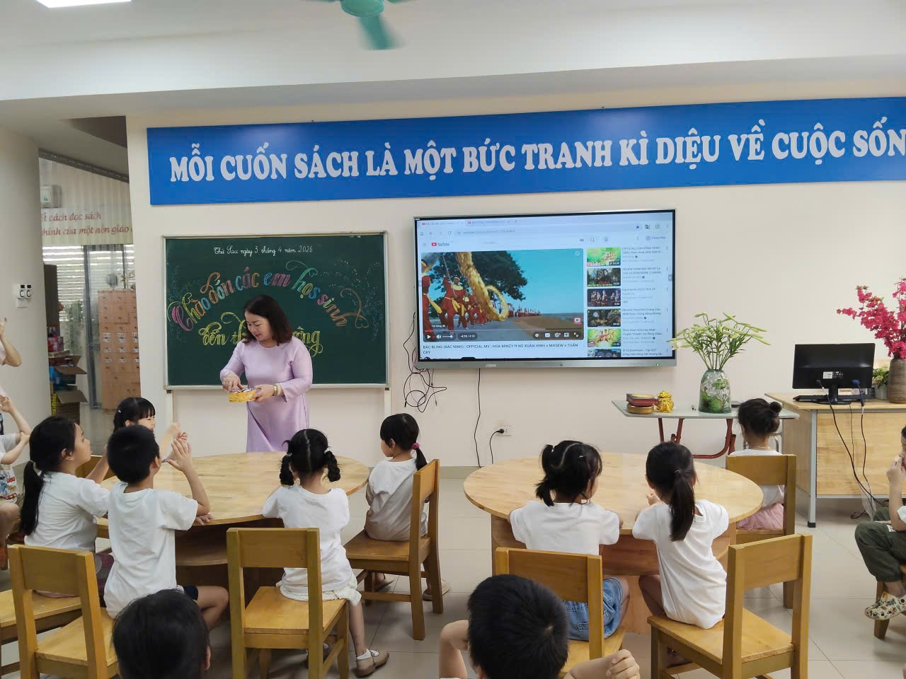 Sáng ngày 03/4/2026, Trường Tiểu học Đại Yên đã tổ chức thành công chương trình đón các bé đến từ ba trường mầm non: Trường Mầm non Số 10, Lớp Mầm non Độc lập Vườn Trẻ Thơ và Lớp Mầm non Nắng Hồng Thần Đồng đến tham quan, trải nghiệm môi trường học tập. Chương trình đã để lại nhiều ấn tượng tốt đẹp và cảm xúc đáng nhớ cho các em nhỏ cùng quý phụ huynh.